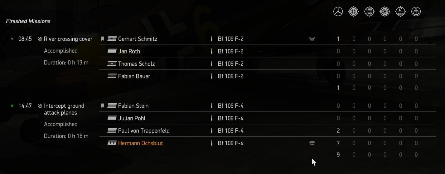 WheelwrightPL Posted August 17, 2020 Posted August 17, 2020 I play on "Hard" difficulty, Iron Man, but my ground density is set to "Low" for performance reasons. I also have "Simplified Physiology" checked (because I believe the excessive blackouts deprive this game of a lot of skill that's involved in flying "on the edge", by lowering everybody's skill to the lowest common denominator that's determined only by the hardcoded "rookie level" physiology). Below screenshot is from my Winter Bf109-G2 campaign where I flew with the attached gunpods. That's what I like about the German planes: they have much more ammo than their Russian counterparts, which leads me to believe this score would not have been possible with guns-only-equipped Yak (prove me wrong). I forgot to mention: I play purely by instruments and in-cockpit timers (except for Yaks which don't have any timers), which means ALL computer aids are turned off. I sincerely encourage other people to fly in such manner as well, because I found it elevates my satisfaction and enjoyment immensely.