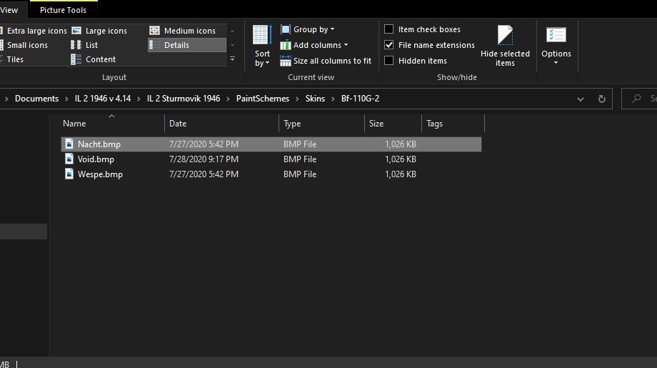 352nd_Wheels Posted September 1, 2020 Posted September 1, 2020 What is the size of the skin? Unless you are running a mod they should be 1026 KB. Here is a screenshot of my Bf-110G-2 skins folder. Wheels