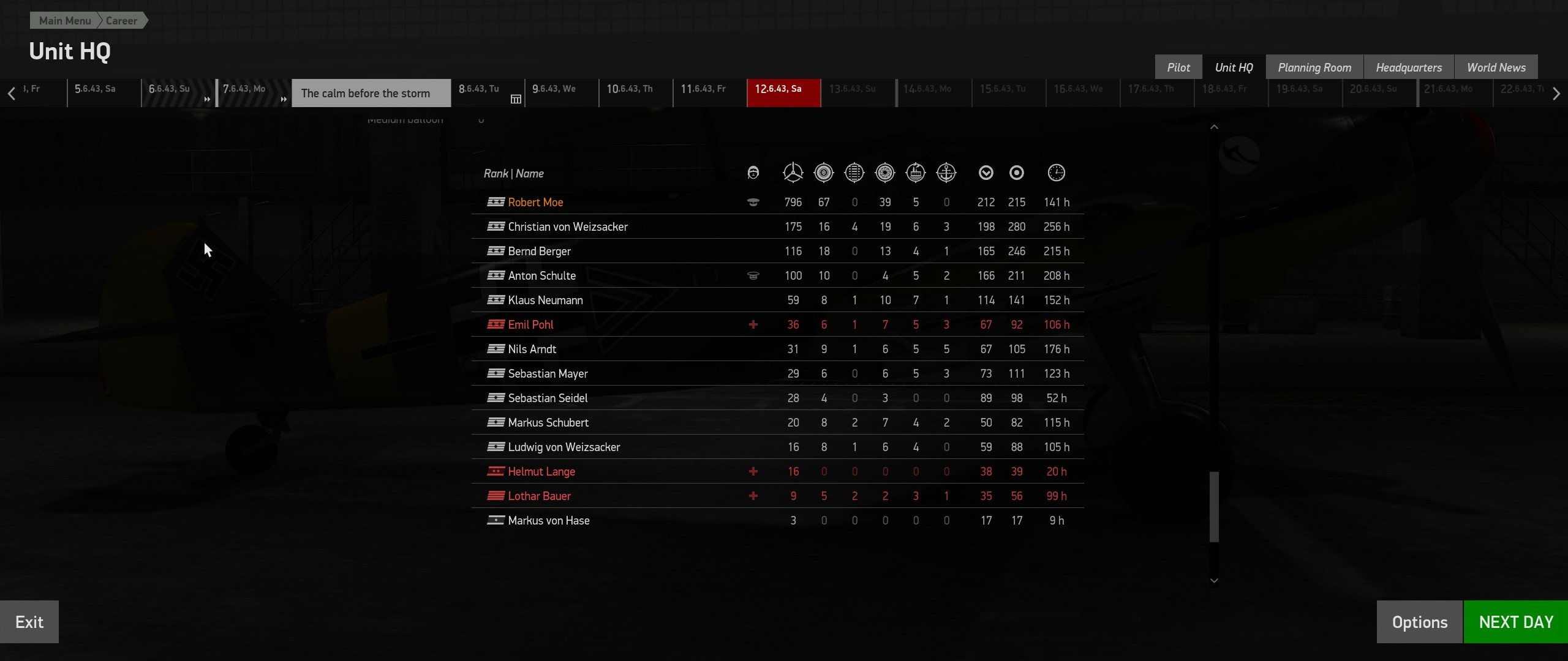 Ram399 Posted September 2, 2020 Posted September 2, 2020 (edited) You're partly right in the sense that the difficulty setting does affects the skill of enemy aircraft encountered as well as that of friendly AI. As well as the number of enemies encountered and just the difficulty of a given mission overall, as might be expected. The catch is that its only the skill level of friendly AI flights that spawn independent of your own flight on the map that are affected by the difficulty setting- so in the case of the Germans the units known as Swift flight. As such if you have the difficulty set to easy the AI swift flights will generally be crewed by veteran profiles while the enemies will be rookies or average and the result will be a turkey shoot, conversely if you have it set to hard then the enemy will be veteran to ace while Swift will be rookie to average and the turkey shoot will go the other way. To this effect I've found that moderate is a fairly even balance in terms of enemy and friendly AI skill as well as the numbers encountered. For pilots within your own unit however, the skill level of their AI is based off of a given pilot's rank and experience with no regard to the difficulty setting- so experienced Hauptmann and Oberleutnants are generally more competent all around. With enough dedication (way too much to be honest), its possible to shelter your AI pilots up to the ace level so that you actually get some semi-reliable wingmen. Here's some screenshots of a unit I've spent the last year trying to build up along with some nice end results: Spoiler Edited September 2, 2020 by Ram399 1