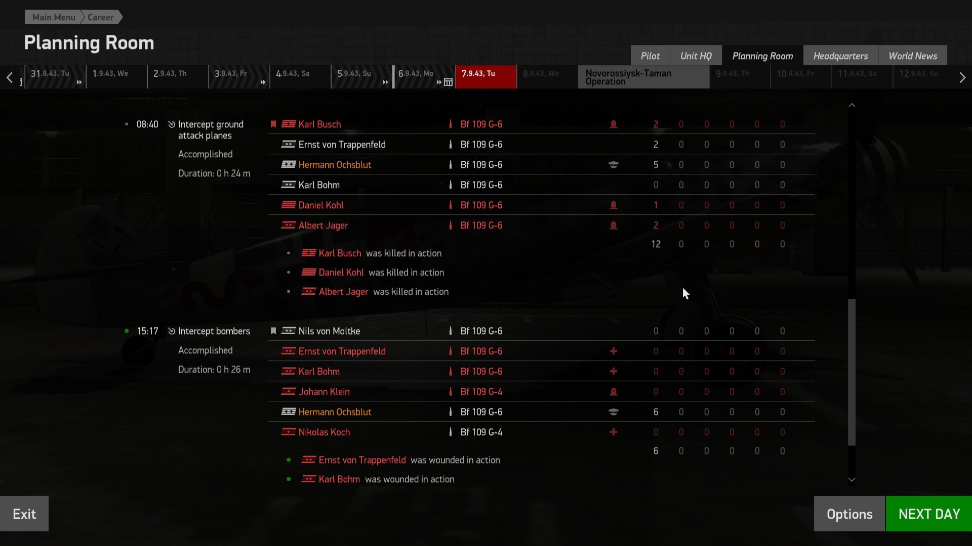 oc2209 Posted September 2, 2020 Posted September 2, 2020 (edited) 5 hours ago, SmokinHole said: I've noticed a trend when flying a Bodenplatte Career. With a difficulty set at "Hard" it seems that the enemy AI are reasonably skilled but the allied AI are pretty inept. I agree with this observation. But there are exceptions (maybe). In my longest career (109, Moscow>Stalingrad>Kuban>Boden), I felt my wingmen were useless. In my (much shorter) Russian career, they felt about the same in MiGs. I suspect their longevity would increase quite a lot in Yaks or La-5FNs, but I haven't tested thoroughly. Just today, I flew my first ever Fw-190D career sortie (an intercept), and of a flight of 8, I had no losses! Shocking, I know. And it was a very long sortie, against P-47s and Spit IXs. Typically, the longer the sortie lasts, the more likely your entire flight will die (including by dimwitted accidents). While I shouldn't assume too much from just one sortie, it might be that the AI handles the 190D better than other German planes (as a friendly AI, at least). 3 hours ago, Ram399 said: For pilots within your own unit however, the skill level of their AI is based off of a given pilot's rank and experience with no regard to the difficulty setting- so experienced Hauptmann and Oberleutnants are generally more competent all around. With enough dedication (way too much to be honest), its possible to shelter your AI pilots up to the ace level so that you actually get some semi-reliable wingmen. Reveal hidden contents Yeah, I've tried to build up my AI wingmen's experience in the relatively safe AI-only sorties (the ones you choose not to fly, if you're a commander). And in my experience, they're still useless. Granted, I didn't give them nearly as much XP as you have. Part of the problem here, evidently, is how slowly the game ups your wingmen's quality level. I would argue that any pilot who survives 25 sorties is no longer a rookie. And for the sake of simplicity (I'm not saying real life applies here), 50 should be considered veteran, and maybe 100 ace. This topic reminds me of a wishlist I mentioned before, where I'd like it if AI (on both sides) were randomly given 'innate talent' stats as well as experience stats. So, for example, 90% would be average talent, but the rest would be exceptional, and fly at one level above their experience level. So they'd never fly like a rookie, and at ace level of XP, they'd be better than average pilots with the same XP. Marginally better, not ridiculously so. This kind of extra stat layer would allow you to really nurture those 'special' AI pilots, and it'd make their losses more keenly felt. And likewise, it'd be more satisfying shooting down enemy 'super-aces.' (the following was supposed to be in a separate post, but was auto-merged): Here, this is my best-worst day: That casualty rate is simply unacceptable. Even 'hard' difficulty shouldn't be that severe to your wingmen's chances. An average of 1 death per flight of 6 planes, per sortie, would still be catastrophic in the real world. But 4 deaths, 3 wounded, in 2 sorties? Granted, these numbers are higher than average, because I think the Sturmoviks had rear gunners (they don't always) in the ground attack intercept. I wager most of these dead and wounded were from the overly-precise AI defensive gunnery. Edited September 2, 2020 by oc2209 Accidental merging of two posts. 1 1