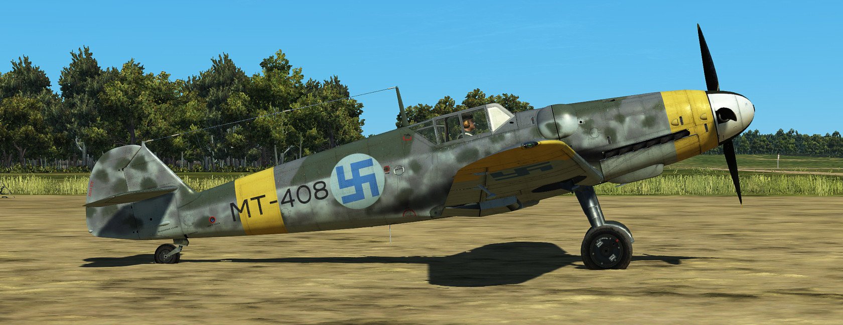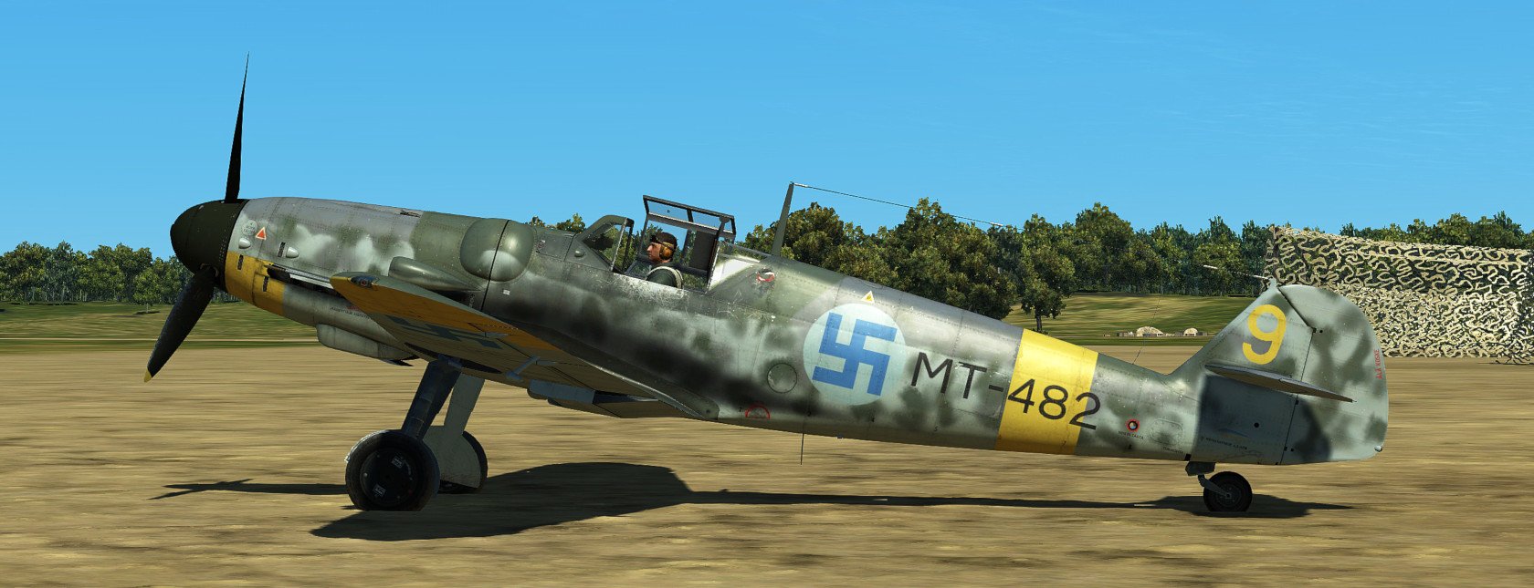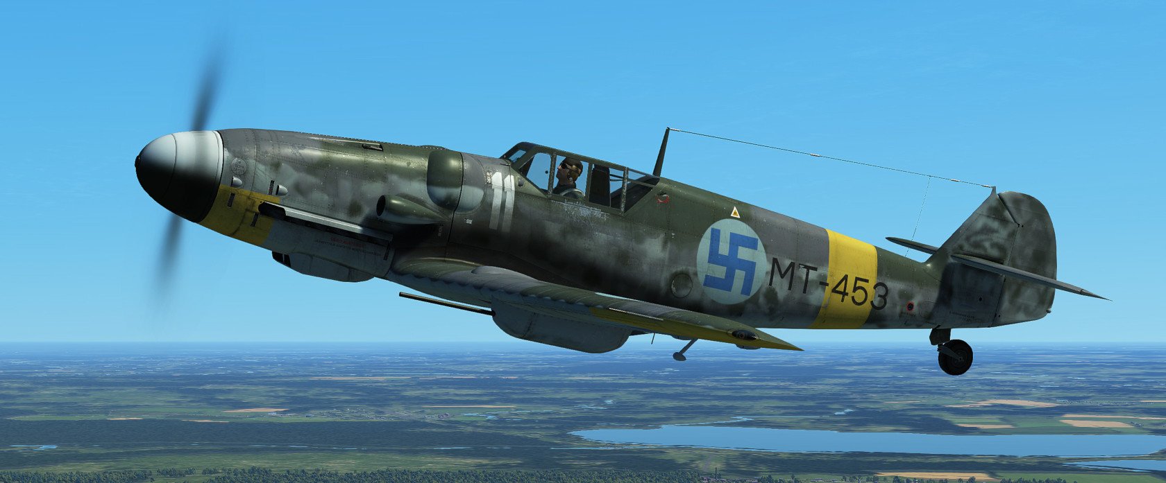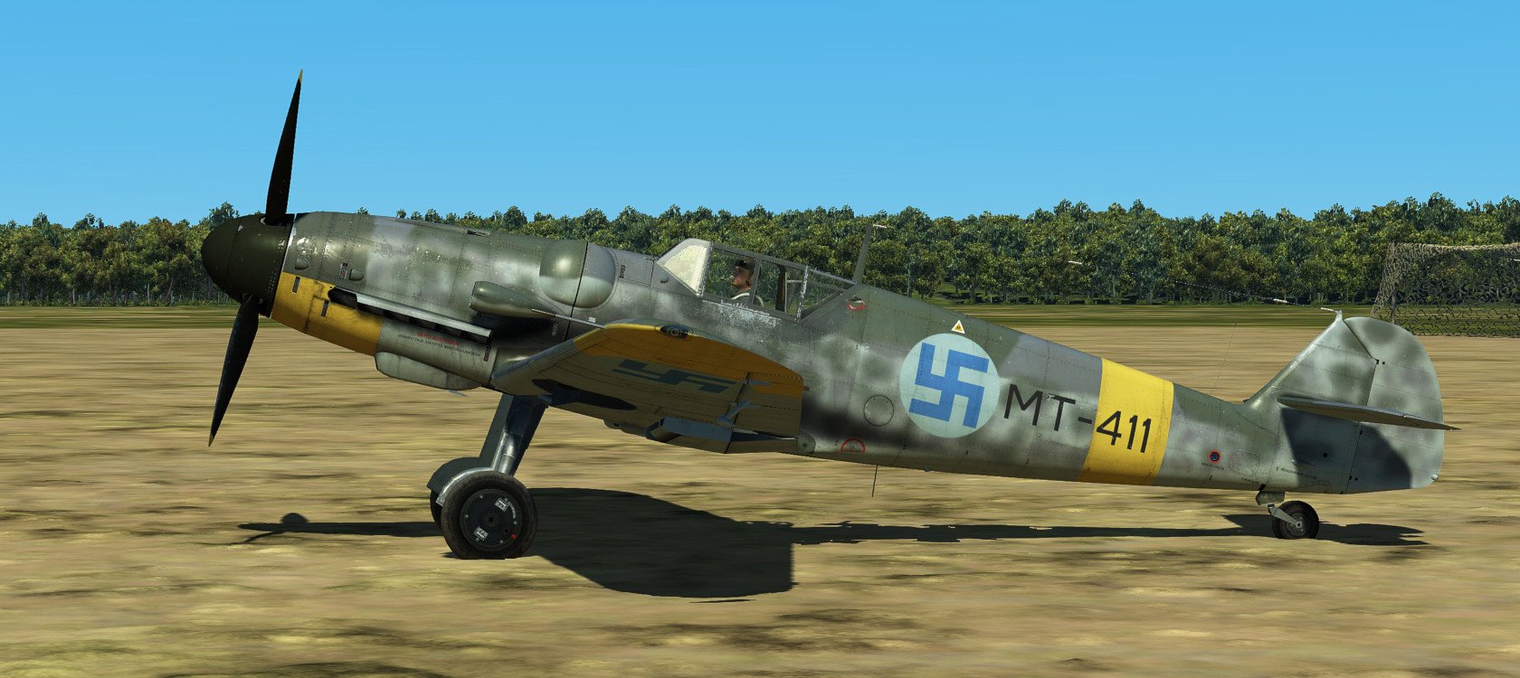 Hanu Posted September 5, 2020 Posted September 5, 2020 (edited) UPDATE: All the skins have been updated now as ICDP released 4k template for G6. THANK YOU!!! Most prominent changes are weathering, repositioned textures according to official 4k normal-map, fixes to radiator inner textures, Finnish Stencil layer (fixed some typos that the template had) and few problems with camopatterns as well as alpha-channel. The skins are combined with layers from all the artists listed in the original post and several of my own. Screenshots are not updated. ------------------------------ Zeus's wonderful Velikie Luki summer map gave me a very strong feeling of flying over Finnish countryside... I thought that this map needs Finnish skins, but there are too little published. (Oh, some donbass Hanu had done some amateurish stuff earlier... ?) So I was inspired again to revisit the skins I've created earlier (Oh boy how much errors there were, sorry for that) and create some new ones for G6 Early AFAIK these skins are as historic as possible. I've been using lots of time to study the planes, colors and plane's history but some guesswork had to be done. The colors RLM 21/27/65/70/74/75/76 are mostly from BlackHellHound's templates, some minor adjustments to RLM 27 (Yellow) in saturation as it looked too neonish-like color at least in my setup. Colors are always debatable and especially in Finnish literature especially RLM 74/75 seem to be a way too grayish usually. The templates/some layers I've used are practically from every possible pro-skinner here. Mainly the template is based on Kruger's work, which itself was based on ICDP's and RaFiGer's works. Some layers are from BlackHellHound's G2 template and also DetCord12b's RLM 75 layers are used. Sorry if I missed someone, not intentional. Thank you all!!! I've created several hand-painted layers of RLM 74/75 mottling from actual images, succeeding somewhat. Tactical numbers are also hand made. Register numbers are from a font Porsimo created for IL-2 '46 many years ago. Fixed some stuff in stencils and so on. My sources have been Stenman / Holda books mostly. Here is the link:https://1drv.ms/u/s!Ai1G8Nbf5lNHgppmiou96XyjxX6EvA?e=ihiS0z And the planes: MT-408, WNr. 411728. Used by 2/HLeLv 30 which was based on Malmi. Designated pilot 1st Lt. T.Kallio. Plane's fate was to crash on landing 24.7.1944. Flight time 64h 35min. No air victories Spoiler MT-411, WNr. 410896. Also used by 2/HLeLv 30. Belonged to 2nd Lt M. Halme. Survived the war. Flight time 300h. No air victories. The yellow ring on the engine was overpainted from the top Spoiler MT-415, WNr. 412105. Used by 3/HLeLv 34, Taipalsaari. Designted pilot was Msg K.Alikoski. However Major Eino Luukkanen (CO. of HLeLv 34) used this particular plane with great success, scoring 16 air victories with MT-415. Total amount was 20 victories for MT-415. Survived the war and timed quite stunning amount of 591h 45mins of flight time. NOTE: real MT-415 had a tall tail and early heavily-framed canopy, but this was too interesting plane, so I chose to use G6 early model for it anyway. Spoiler MT-416, WNr. 411704, Used by 3/HHLeLv 34, pilot Msg A. Nuorala who scored 6/10 of MT-416's victories. It's war-path ended in 29.6.1944 when Nuorala landed on the soft part of the runway and MT-416 was flipped over. Later repaired and total flight time was 298h 50min. Spoiler MT-423, WNr. 412122. Belonged to 1/HHLeLv 34, Msg. H.Leino. 4 different pilots scored one victory each with MT-423. 30th of June the other landing gear did not come out and Leino had to do forced landing. MT-423 did not make it to war anymore, but was repaired and total flight time was 306h 25min. It was decorated with the HLeLv 34's Eagle logo in the rudder. NOTE: real MT-423 had a tall tail and early heavily-framed canopy like MT-415. Spoiler MT-437, WNr. 163627 Used by 3/HHLeLv 24, pilot Msg. L.Ahokas. 4 air victories, 2 scored by Sgt K.Keskinummi. Was damaged during air combat and was sent to repairs, but did not make it in time to fly in war anymore. Flight time 310h 30min. Was equipped with Trop air filter. Tail rudder has HLeLv 24's very rare "Lynx" logo. Spoiler MT-453, WNr. 165274 Used by 1/HHLeLv 34, pilot Msg. O.Länsivaara. 5 air victories. Was equipped with 20mm gunpods. WO Antti Tani scored 3 IL-2's in one sortie with this plane. Survived the war. Flight time 300h. Was equipped with Trop air filter. Spoiler MT-482, WNr. 165185 Belonged to 3/HHLeLv 34, pilot 1st Ltn. L.Lehtonen. No air victories. Survived the war. Flight time 300h. Was equipped with Trop air filter. Spoiler MT-483, WNr. 710012 Used by 1/HHLeLv 24, pilot Cpt. A.Lassila. No air victories with MT-483. Survived the war. Flight time 250h. She was actually G-8 without cameras, but still portrayed here as the model of the plane was correct. Spoiler Edited September 23, 2020 by Hanu Major update 14 5 4
