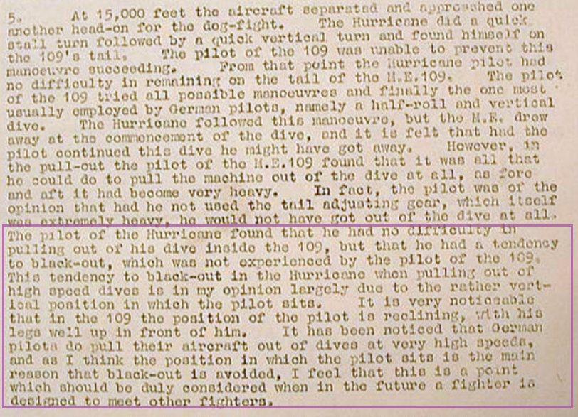 ZachariasX Posted October 3, 2020 Posted October 3, 2020 (edited) Just because a text is old doesn't mean it is any more scientifically valid than anything posted today. As long as they don't have speed, altitude and g readouts in pulling out of the dive, this means nothing except that the Hurricane has a lighter elevator than the 109 that is known to stiffen up in dives more than the others. The average pilot back then had little background in physics and aerodynamics. I would say this applys to the particular pilot writing this report as well. But he will surely correlate his observations to things obvious to him, which is the seating position. One should definitely take such reports with a grain of salt. Edited October 3, 2020 by ZachariasX 1