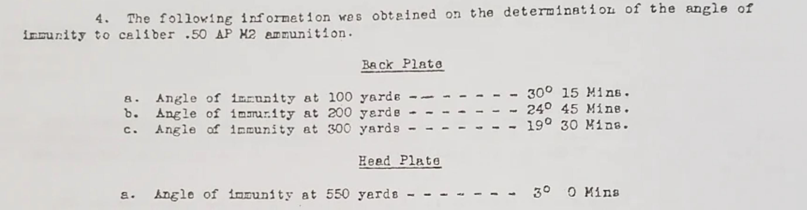 357th_KW Posted November 6, 2020 Posted November 6, 2020 The link is fixed, sorry about that. The angle of immunity at 100 yards was 30 degrees 15 minutes. At any angle below that it would be penetrated - and note the angle gets smaller as range increases - they list the angle of immunity of the head plate (which was the higher quality piece I was refering to) at 550 yards as 3 degrees - so slightly more generous then my range based of the velocity listed on page 1. But they were also firing from some sort of test rifle instead of an open bolt AN/M2, so the velocity may have been higher than a typical aircraft gun. 1