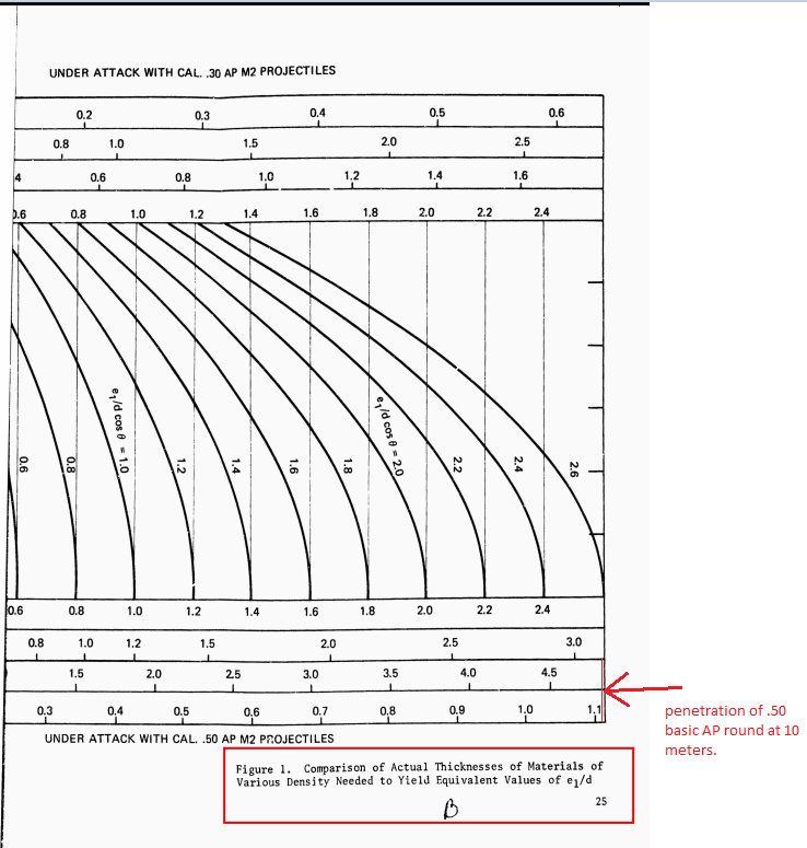 Honza Posted October 26, 2020 Posted October 26, 2020 (edited) 29 minutes ago, -[HRAF]Roland_HUNter said: I found this interesting military report:https://apps.dtic.mil/dtic/tr/fulltext/u2/703874.pdf Thats report from which i sent you charts of thicknesses of steel and dural and it only supports our claims that 22, neither 27mms of dural cant stop .50 caliber AP round at combat ranges. Based on this chart that shows penetration values of AP round against steel plate under different angles and ranges. Edited October 26, 2020 by =DMD=Honza