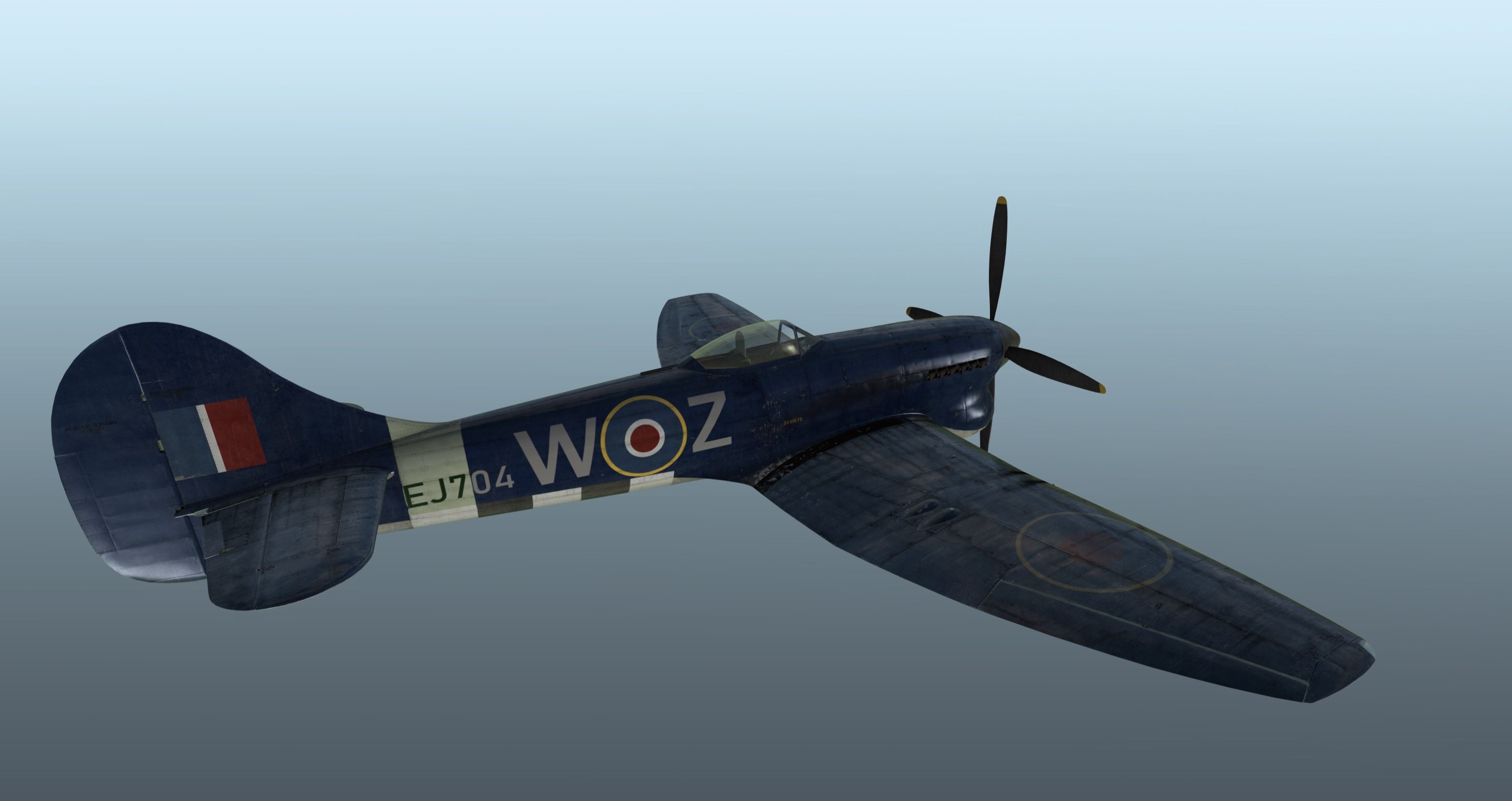 jollyjack Posted November 14, 2020 Posted November 14, 2020 (edited) First attempt mimicking historical (sort of), and a question too. Starter was the 4k template from Il2, and thanks Raptorattacker i now finally got that alpha thing working. Q: The side letter and number codes are usually like WX-roundel-F. To change that ordering to F-roundel-WX is probably not correct, but i found uploaded skins for IL2 files where they did that. Both sides different thus. Alas the spacing regarding the five letter (pictured here EJ703) and the Roundel are not enough for 2 letters (top picture). Size seems (the W) a historic fact. BTW what is a correct font? There seemed to be many used in '44- '45. Roundels are usually at the same spot looking at photos from WW2. Download: http://www.mediafire.com/file/9sd9yjolk3pq2e5/%2BTempestMkVs2_JJ_v1b_RAF_WPU.zip/file Here is another (phantasy sea bue) one: download: http://www.mediafire.com/file/19jstiobvv3cp8u/%2BTempestMkVs2_JJ_v1b_RAF_WPZ.zip/file Edited November 14, 2020 by jollyjack 3