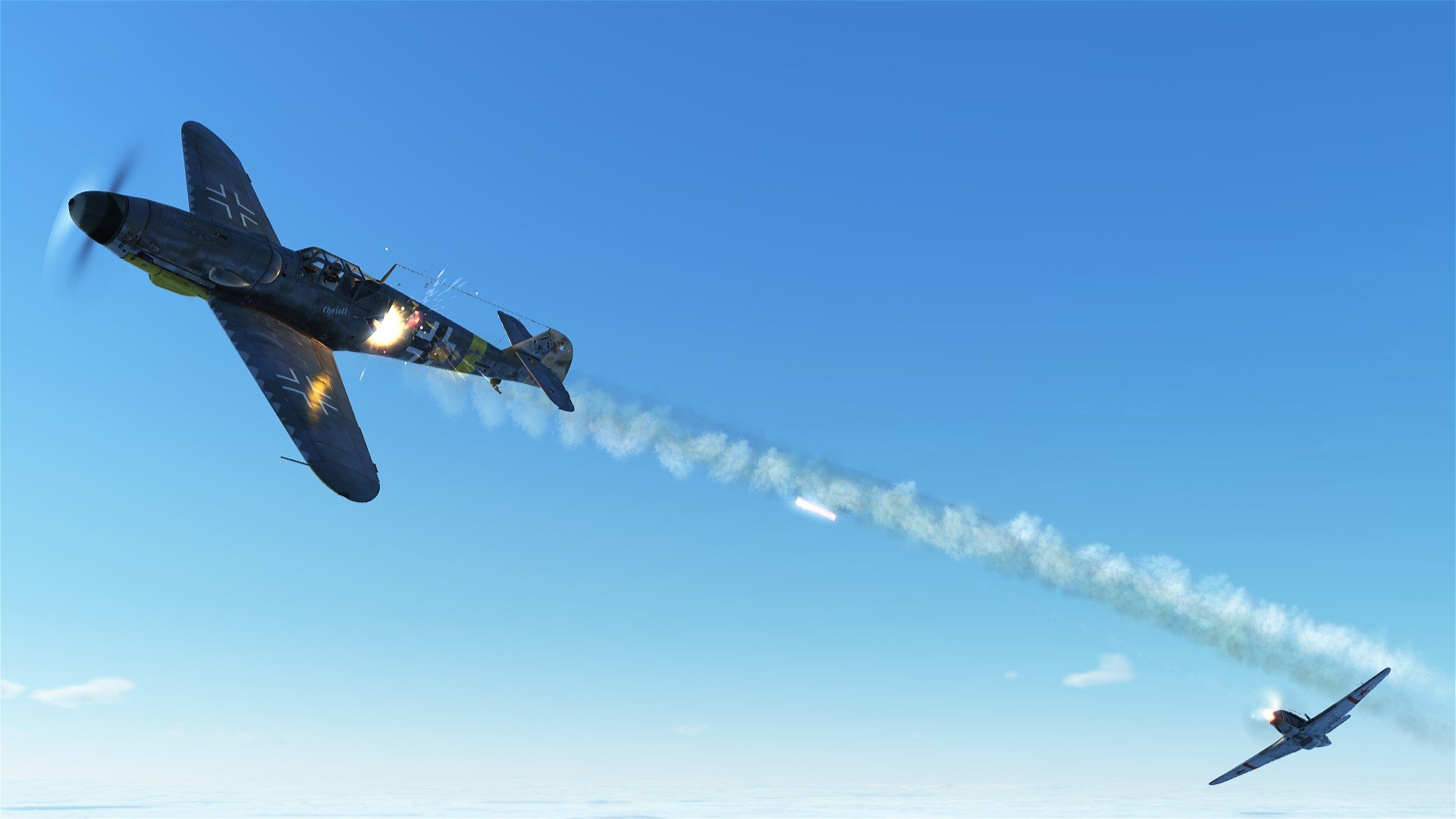 oc2209 Posted December 6, 2020 Posted December 6, 2020 This is the last bit I'll add, since it's something I've been experimenting with lately. I kick the rudder a little while I shoot at a turning target. This is more effective in the Yak than the 109, since the Yak's guns have a higher rate of fire. I used to dislike this extra rate of fire as I wasted ammo with it. But now I'm flying the Yak so often, I'm beginning to lose my touch with the 109's guns. Anyway, long story short: This is something I've never managed to do, with such a small amount of ammo spent. Detached wing and a fire, all because I kicked the rudder to spread the short burst into something like a shotgun blast. Even if I can't get these results every time... it's still fun trying.