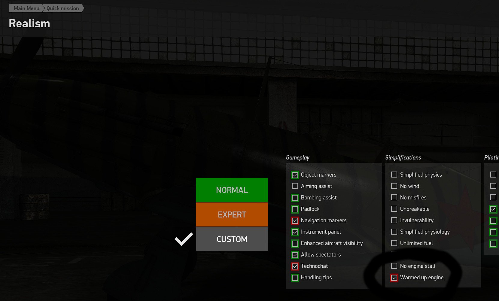 FlyingH Posted January 1, 2021 Posted January 1, 2021 In your "realism" settings there is a tickmark in the row furthest to the right (green box) what does that stand for? Is it some engine helper? If so untick it and try again.