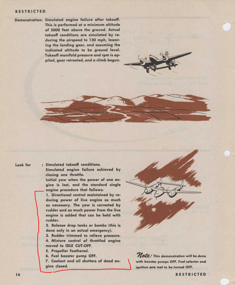 VA_chikinpickle Posted January 18, 2021 Author Posted January 18, 2021 (edited) Quote While I don't necessarily oppose adding separate keybinds for all the engine controls, I also don't think it's particularly necessary, and would add significantly to what is already a quite long and complicated list of keybinds to go through. Additionally, the need to actually adjust multiple engines at a time is quite slim. Your example (leaving one engine on auto while adjusting the other to manual and fully closed) works perfectly well within the current system. Simply deselect engine 1, make the required changes on engine 2, then reselect engine 1 and deselect engine 2. Engine 2 is now manually feathered and has everything closed, engine 1 is on auto, and any changes you make will only effect engine 1. So I'm familiar with the engine selection ability, and that method of adjusting engine controls, and I have used this method for quite some time to adjust all other engine controls in the P38. It is clunky, but it can be used. I appreciate your time to explain it to me however, in the case that I did not know. That being said, I think that pictures and videos are worth 1000 words. I have made a short video showing that the manual/automatic modes of the oil radiators are completely linked, and that even engine selection does not allow you to perform the proper engine out procedure in the P38. Here we can see that I have one engine selected, when toggling between manual and automatic modes, you can see that both engine radiators change modes. In the second demonstration, I have no engines selected at all, yet the controls still function to change the mode of both radiators. I realize this seems obscure and nit picky especially to some people with simple setups, but to give context, I fly in VR with a custom simpit. I have a switch panel dedicated to all the engine functions so I can fly twins and not have to look at a keyboard for anything, or mess with juggling the engine selection. I enjoy the high level of immersion that il2 offers in VR especially with real switches to hit. I've read the flight manuals and enjoy following the procedures when I fly, this is a simulator with some extra complexity, for those who wish to take advantage of it. I would submit to those who don't wish to take advantage of the added complexity, that you can always do the same thing that all the other engine controls do. You can set up the manual/auto switch to a single binding just like prop feather, radiator position, etc. No need for you to use it if you don't want. But for those who would like to use separate engine bindings for our fancy overkill setups, it is there. And even the current setup does not support the proper function with engine selection and radiator modes. I don't see how adding an additional 4 key bindings would somehow now cause a person to be overwhelmed by complex key binding schemes, but that is only my opinion. For more context, here is the flight training video for the P38, showing the procedure for shutting down a dead engine. Not possible with the current control scheme, even without separate bindings as engine selection does not affect the radiator mode controls. The demonstration film is from an earlier variant of the P38, but you can see that closing the prestone (coolant) and oil cooler flaps of the dead engine is part of the procedure. Included below is a page from the flight manual stating the same thing. Item #7 on the procedure. I don't see how it would hurt anything to add this function into the game, it would only add to it. And you can see that there is a similar request regarding prop feather controls in this very same forum from one year ago, which the devs were nice enough to grant. Cheers, Edited January 18, 2021 by VA_chikinpickle