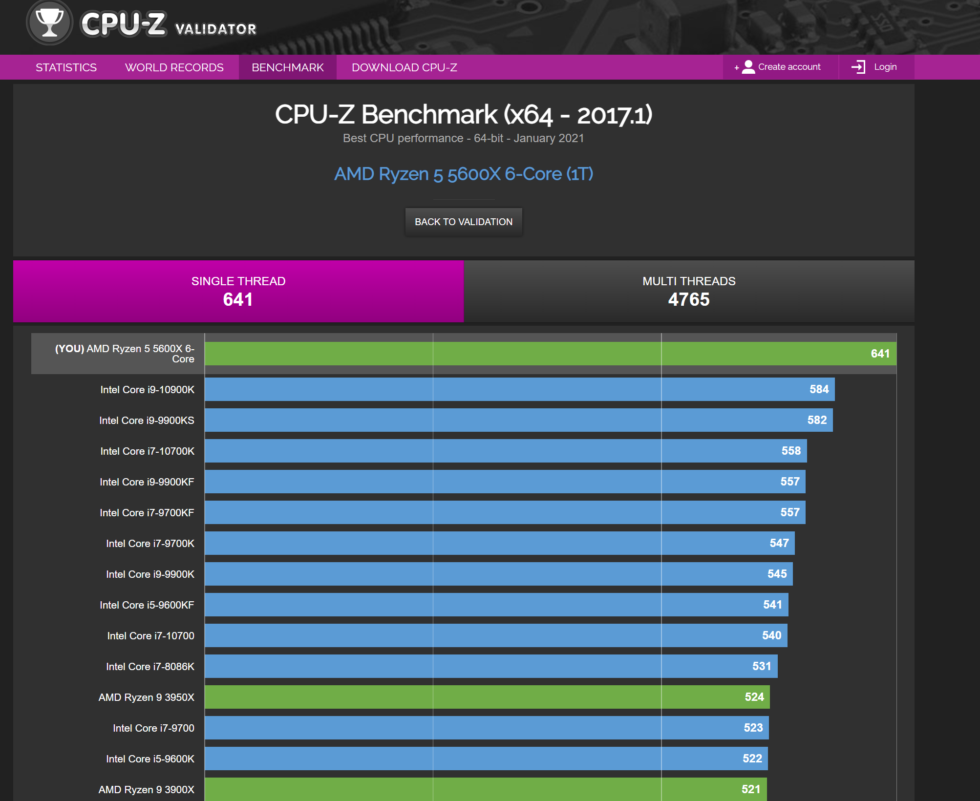 chiliwili69 Posted January 6, 2021 Posted January 6, 2021 Just single-thread from CPU-Z for a basic Zen 3 5600X out-of-box (no OC). 1