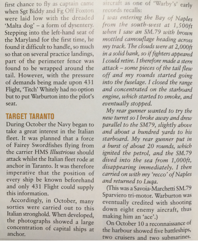 ZachariasX Posted January 18, 2021 Posted January 18, 2021 There were still arguments, of course. [Air Vice Marshal Hugh Pughe] Lloyd did not approve of photo reconnaissance pilots who got distracted into dogfights with enemy aircraft. He wanted them back at base with their photographs intact, not taking risks and showing off. Lloyd later remembered how he would say to Warburton, ‘“Really Adrian, it’s very naughty of you to go chasing these poor Italians,” and he would answer a little shamefacedly “Well, sir, it was too easy.” Then he would come into my office [on another day] and say rather sheepishly: “I’ve shot down another one”. “You musn’t do that Adrian,” I told him: and so it would go on.’2 Even allowing for the rose-tinted nature of memories recalled years after the event, the story still reveals the remarkably frank and informal way the most senior RAF man in Malta dealt with the junior flying officer. Downing, Taylor. Spies In The Sky: The Secret Battle for Aerial Intelligence during World War II (S.166). Little, Brown Book Group. Kindle-Version. 1