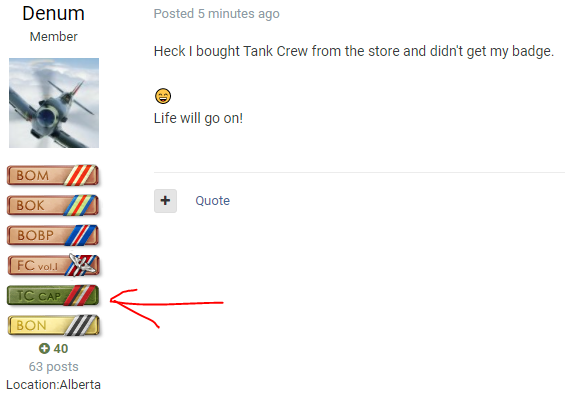 Denum Posted February 5, 2021 Posted February 5, 2021 Heck I bought Tank Crew from the store and didn't get my badge. ? Life will go on!