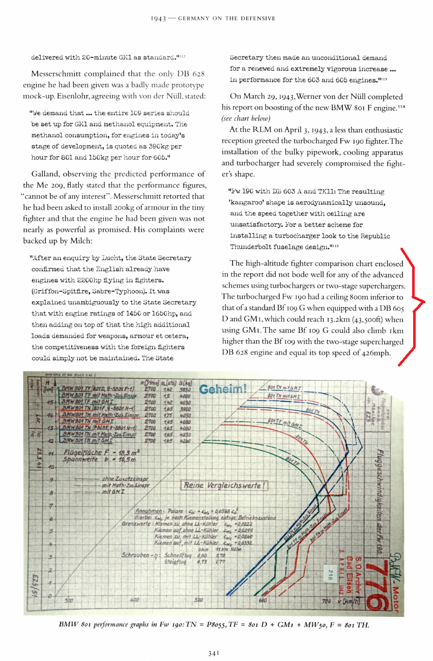 III/JG52_Otto_-I- Posted August 8, 2021 Posted August 8, 2021 (edited) 3 hours ago, ZachariasX said: Yeah. It‘s right on the pages where he is foaming, huffing and puffing about these engines not existing in service but the Merlin 61 would. I deduced in your previous posts that you had been not read the Calum Douglas´s book, but with this post you have confirmed it.Pag. 341 of the book. "" The turbocharged Fw 190 had a ceiling 800 m. inferior to that of a standard Bf 109 G when equipped with a DB 605 D and GM1, which could reach 13.2km (43,500ft) when using GM1. The same Bf 109 G could also climb 1 km higher than the Bf 109 with the two-stage supercharged DB 628 engine and equal its top speed of 426mph.[685 kph] "" By the way; Here is the page 297, that you referring previously. It was only a bravado of Milch, to pissing off to Daimler Benz engineers. Calum stated that this menace of cancelation the DB engines contract and send all engineers to work in JUMO engines "was a token threat from Milch". Edited August 8, 2021 by III/JG52_Otto_-I-