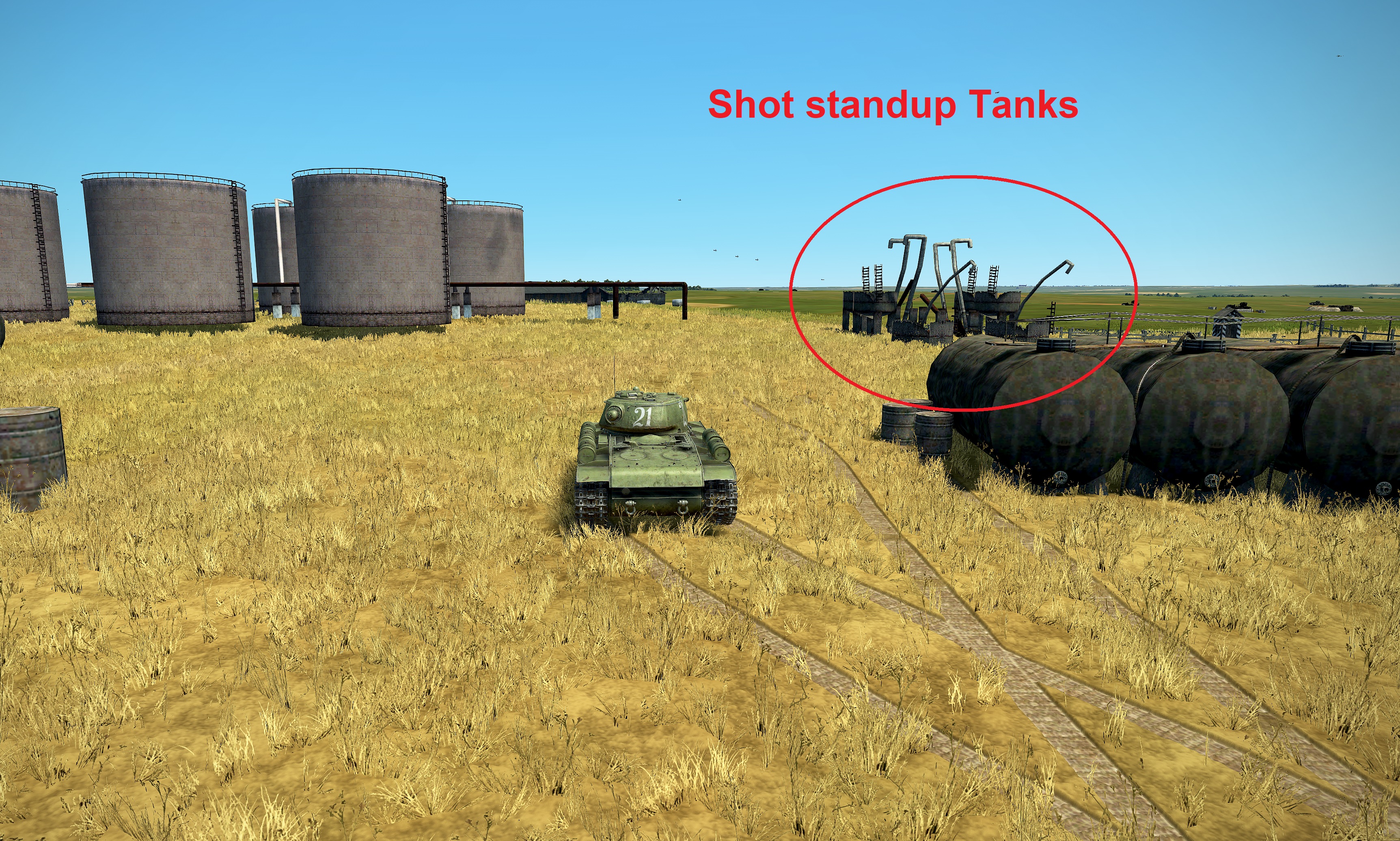 jollyjack Posted February 10, 2021 Author Posted February 10, 2021 (edited) Well, i have to conclude that it's impossible to destroy with any tank ammo, for both a K1vs or a T34. The smaller stand up oil tanks can be shot, but the large ones and the flat laying tanks (picture below) you can only destroy by bumping against them. PS both tank blocks set to Linked Entry, enemy ... is this a bug? 4 hours ago, jollyjack said: * Edited February 10, 2021 by jollyjack
