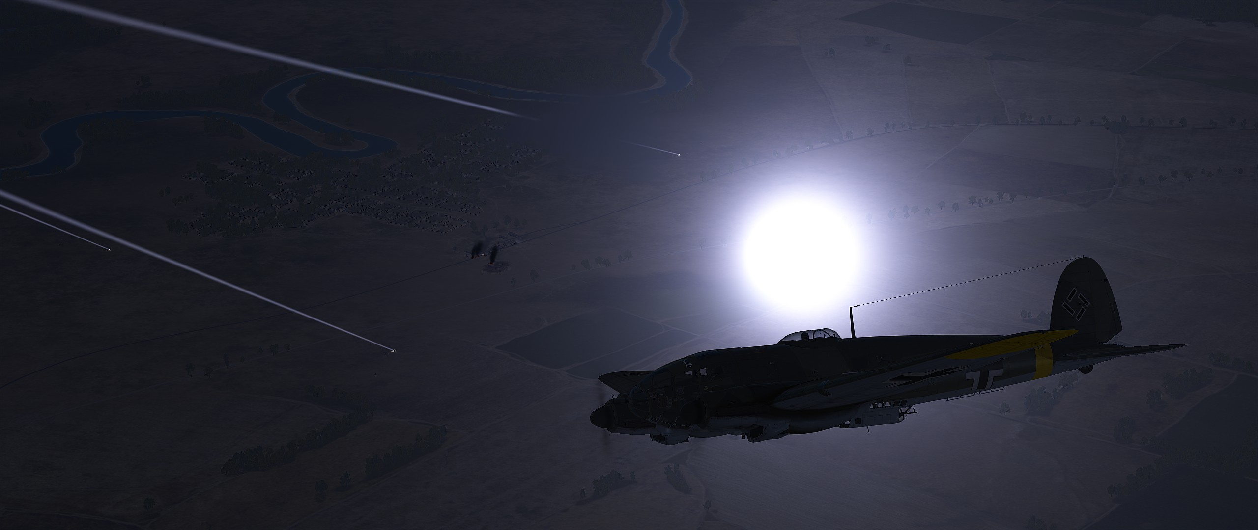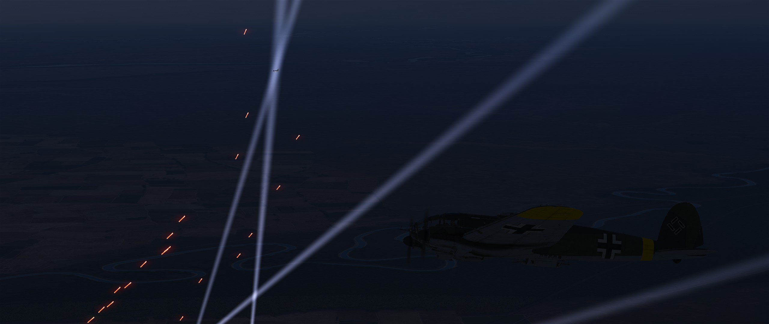 GiftZahnsSteigern Posted February 13, 2021 Posted February 13, 2021 (edited) Here's an image from the last mission in Max Plankd's career with III./KG 51 (Bodenplatte). Soon after the search lights intersected he became (prophetically enough) past tense. Another benefit of this career is each pilot flies, and hence drops ordinance, individually. So the AI usually drop on target rather than the pastoral countryside 5 klicks from base. By the way: you can call me n, or en, or even ennnnnn. But yu' doesn't have to call me GiftZahnsSteiger. Edited February 13, 2021 by GiftZahnsSteigern attempt at humor