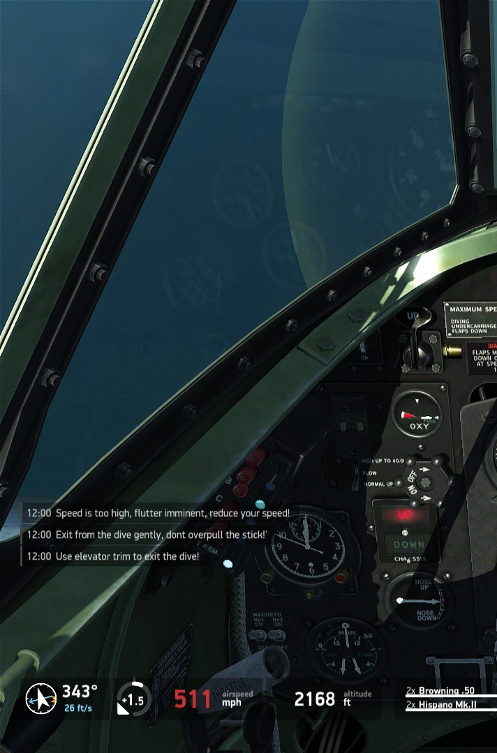 Fabioccio Posted March 8, 2021 Posted March 8, 2021 This time airstart at 10 km, 80l of fuel. With boost enabled reached 11254 m (took the screenshot too late ?). Then turned towards airbase and start to dive at full throttle with boost enabled and prop-pitch at 100%. Took various screenshots at over 820 kmh while fighting with the trim wheel to get a bit more speed. The best recorded is 825 kmh. Finally pull-up not too near the ground without cutting throttle (and boost) and the engine died instantly ? Managed to glide to the airbase and landed just a few meters before the strip, ended on it. That's all for now. S! 1