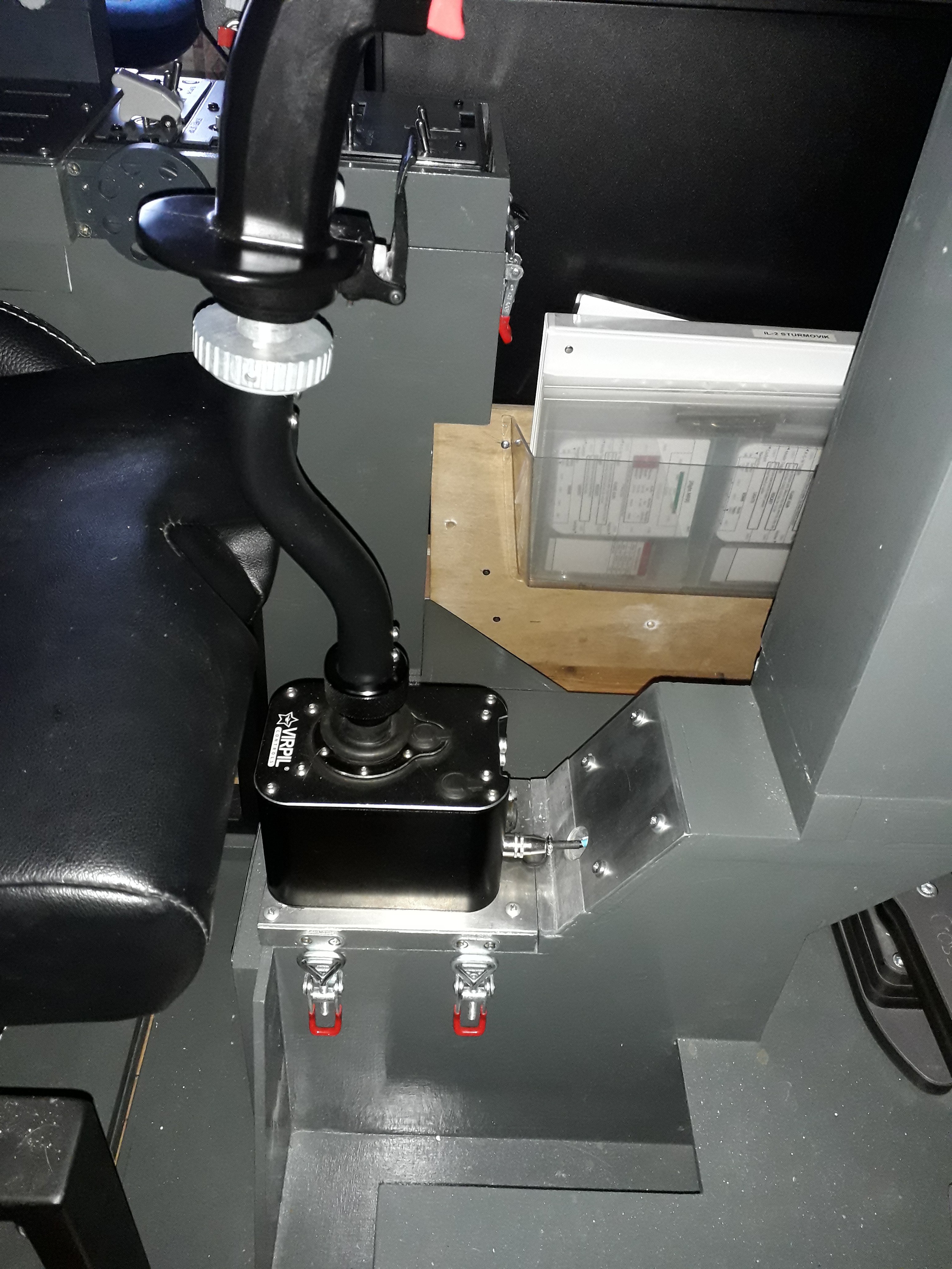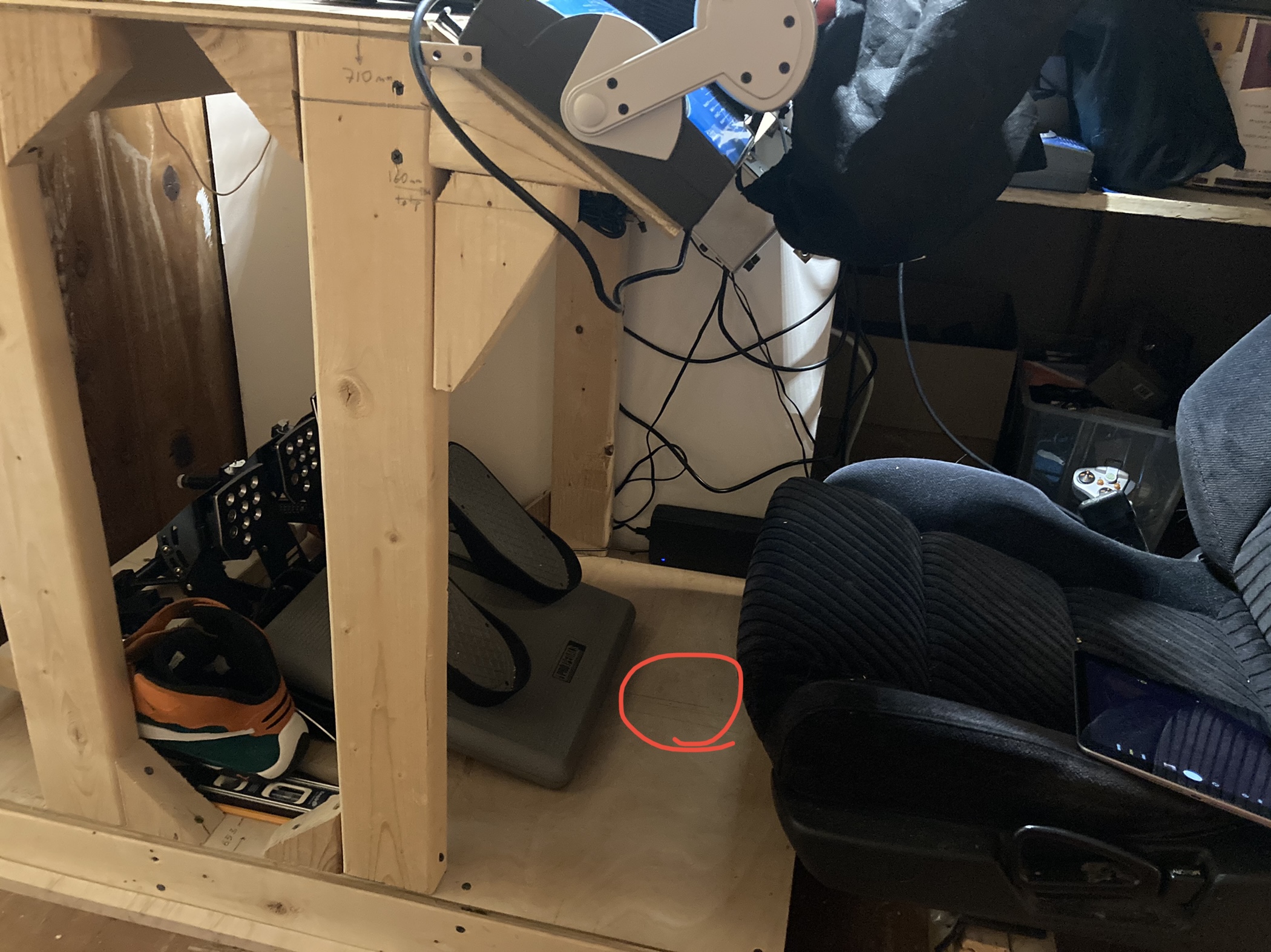 kissTheSky Posted March 28, 2021 Posted March 28, 2021 I’ve built a racing cockpit many years ago and have been happy with it as far as my set goes, But now that I also have a pc that can run IL-2, I’m slowly turning it into an MPC (multi Purpose Cockpit). Ive recently changed wheel/pedal combo and I think I’ve dialed pedals to where I’m comfortable with a slight seat adjustment. I’ve decided CH Pro rudders are the last bit of flying sim gear I’m going to replace and I think I’ll have them partially resting on the race sim pedals while I’m playing IL-2, which leaves the red marked up area for a stick base. My hope is to mount the base on the “floor” of my rig itself, and then a 30-40 cm extension (an S extension probably) will bring the stick comfortably to optimum elevation between the knees, without a notch in the seat. Obviosly, I’d rather not have the stick between my legs when I’m racing, so I’m looking for the easiest/quickest ON/OFF capabilities for the stick extension and base. Never having used anything but my Saitek X45, I’m looking to get some input on what your experiences are when it comes to ease of removal/replacement and the effects of repeated ON/OFF cycles on sticks and bases. Thanks in advance, PS: currently throttle’s location and position is not ideal, so another plywood base is in “production” to place it closer to left knee/femur when seated. I’m still working on lowering the table top so the steering wheel is the correct angle. New steering base has a shallower mounting angle than the old one, so the cockpit will have to be adjusted for optimum steering wheel placement
