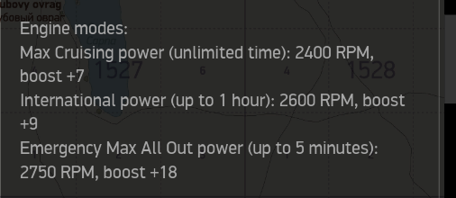 CountZero Posted May 16, 2021 Posted May 16, 2021 (edited) 3 hours ago, So_ein_Feuerball said: Very informative post, especially the end point 3. (ii) "These figures provide a general guide to the reasonable use of the engine. In combat and emergency other considerations may justify the pilot in diregarding these restrictions." What I would love to know more about is which setting actually causes the most issues with engine life in IL2 GB. So what kind of formula are we going with? How do we quantify the RPM vs Throttle settings? I.e. on a Merlin 66: 3000 RPM at +10 lbs of boost vs 2600 RPM at +25 lbs of boost? on 3000rp and 10lbs safe time is 10min, on 2600rpm you cant do 25lbs, max is around 18lbs, and you can do it for safe time of 22min. In both cases techchat shows your in emergancy mode. This is reason why broken messages that tels player when his safe time run out should be fixed, because the way devs decided to model timers in game, thouse messages are only way to know when game wonts you to stop or it will unrealsiticly kill your engine. It dont work like that in real world so player needs to see thouse messages if they decided to do it this way where time limit is what kills your engine and you dont know what your time limit is if your not flying on max power. Simple bug to fix that makes game more enjoyable with the way they wont to limit engines. I realy dont know who would think real ww2 pilot would say oh no i used up my 1min or 5min and now ill just stop and let that enemy catch me and kill me just so my mechanic ave up some time on engine overhauling... time limits were just recomandations, not kill switch like we have in game, and on top kill switch that we dont know when it fires because broken techchat messages that are still not fixed. Edited May 16, 2021 by CountZero 1