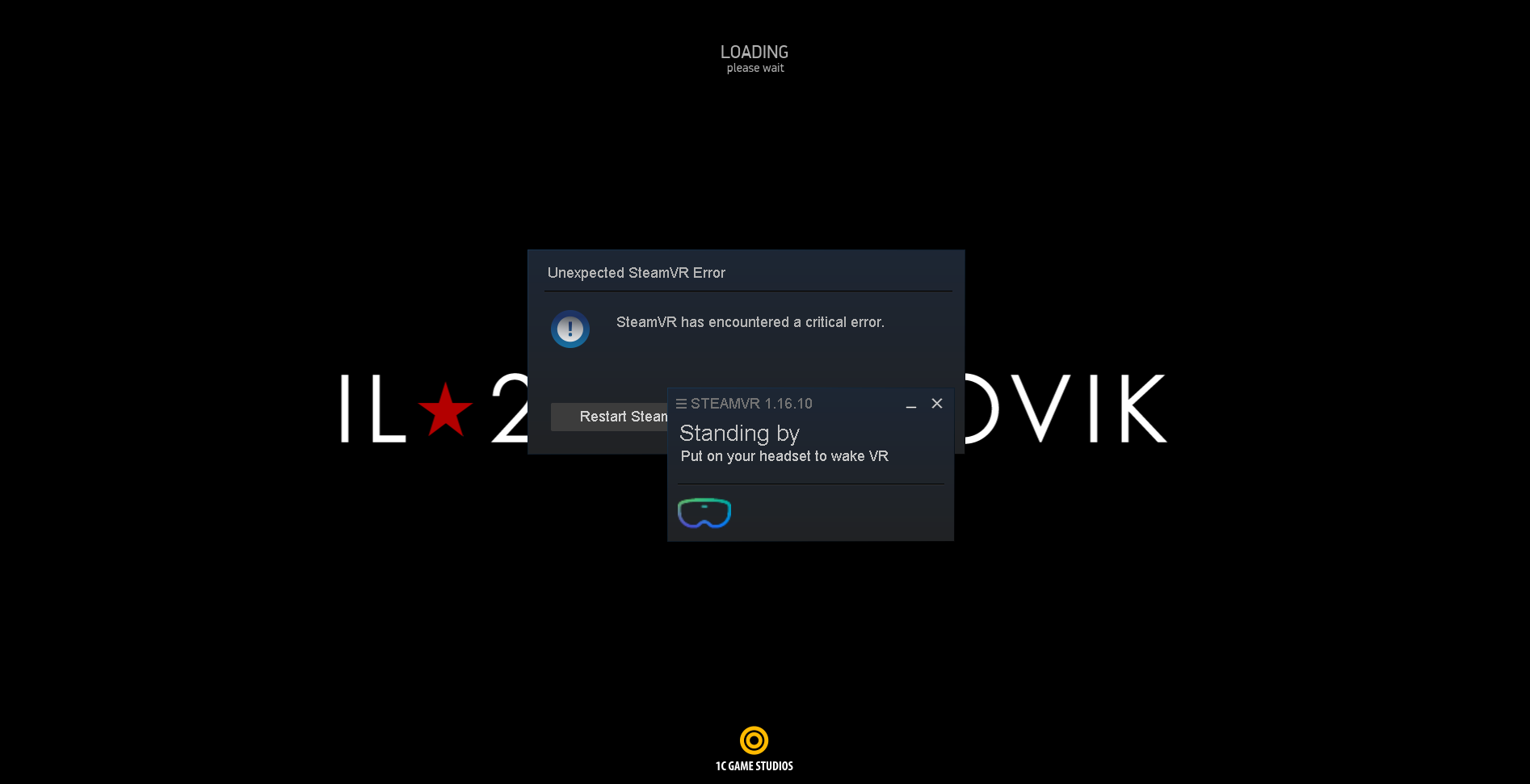 SCG_motoadve Posted May 8, 2021 Author Posted May 8, 2021 Re installed Steam VR, IL2 and WMR and still crashes when loading.