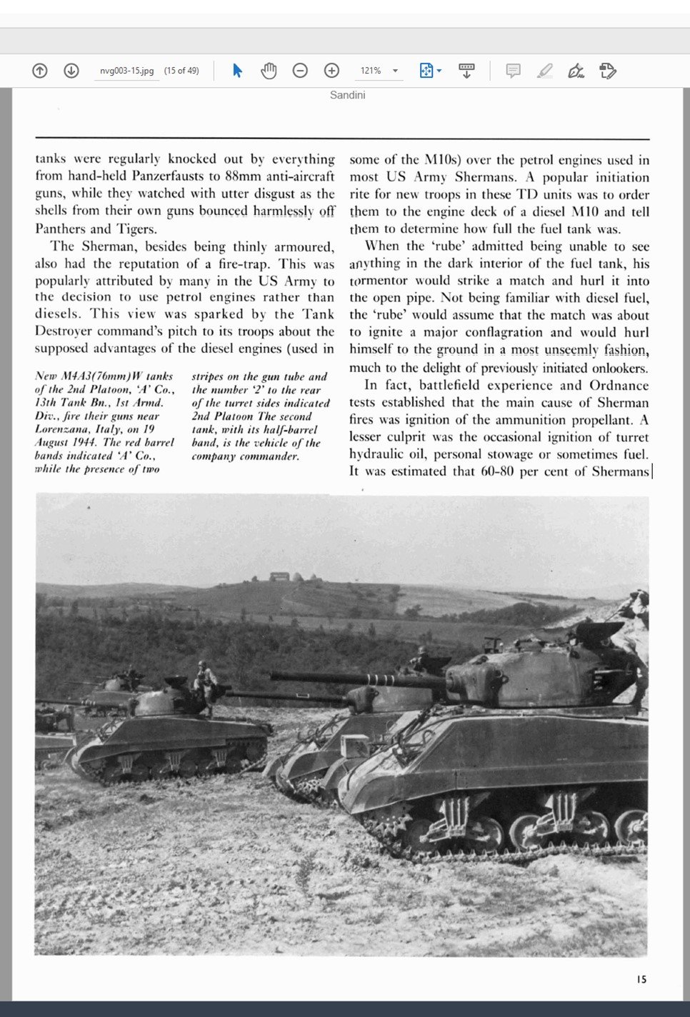 JV44HeinzBar Posted September 14, 2021 Posted September 14, 2021 20 hours ago, gunmetalstug said: I don't usually get involved in these types of debates, but I feel like the above post has missed the point entirely - the quotes praising Death Traps are from literary sources, and not actual statisticians or people who have done AFV research. Ambrose in particular should not be considered a reliable source. I also SEVERELY doubt the evidence of Shermans being "out maneuvered" by Tigers and Panthers, especially basing that around a single account. S!, I'm not saying Ambrose should be considered the only source, but with 40+ books on history, a PhD in history, numerous articles, the man does have some experience in researching topics. I find him no less credible than other authors of history. As for being Shermans being out maneuvered and catching fire, I'll post a rebuttal by using the following scans, which of course, may or may not be poorly researched. I've got literally hundreds of books about WW1 & WW2, ranging from infantry, aircraft, AFV, SPG, and ships much to the chagrin of my wife. Unfortunately, I haven't had time to scan most of them, but I can supply citations and written documents from time to time. 1