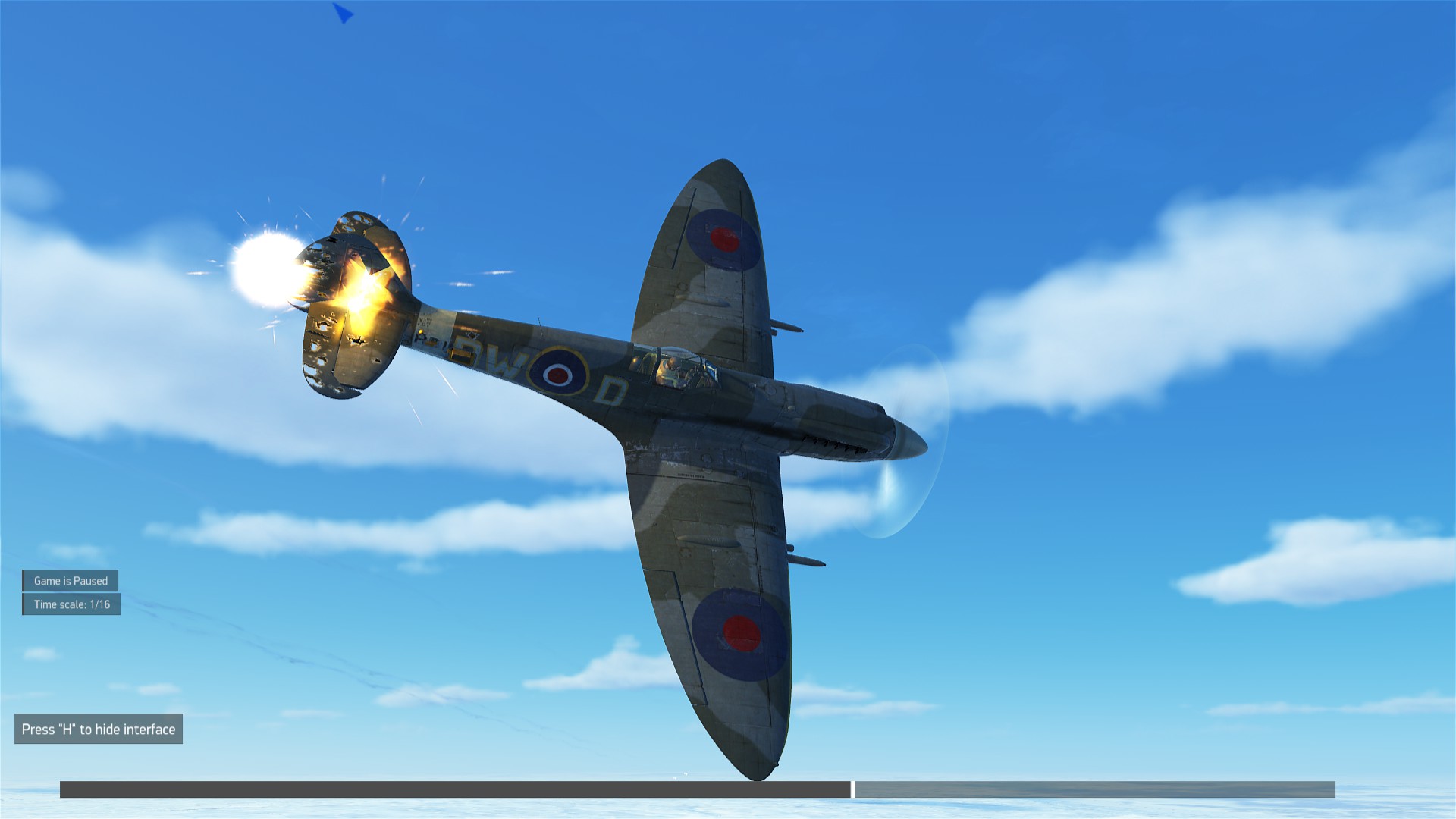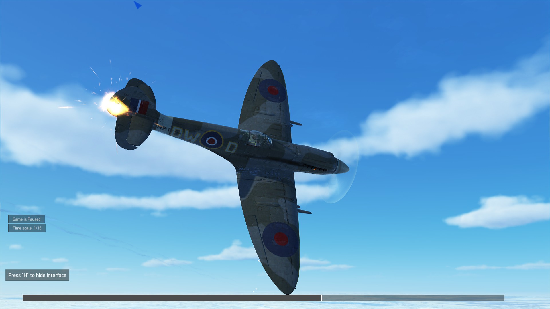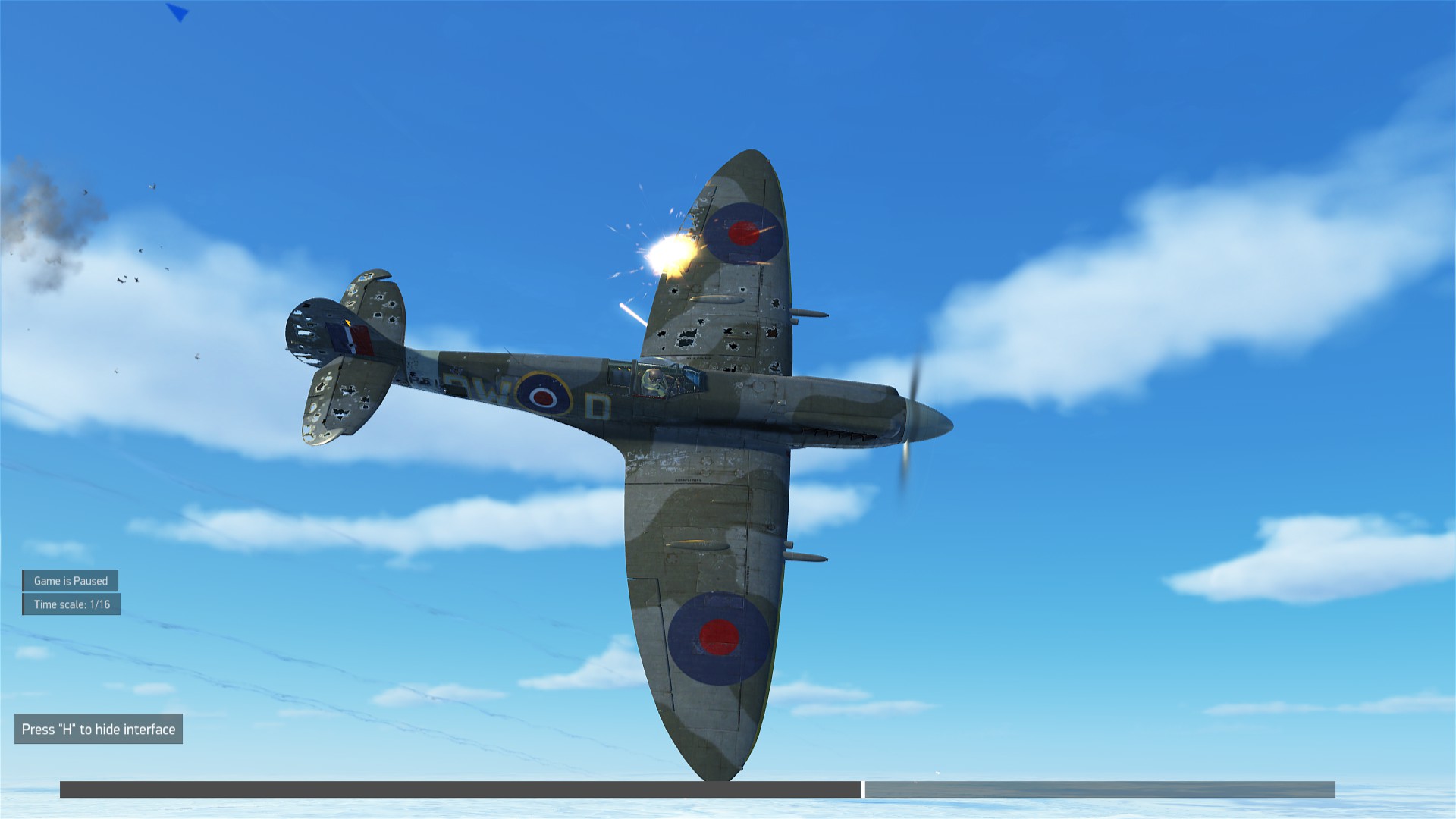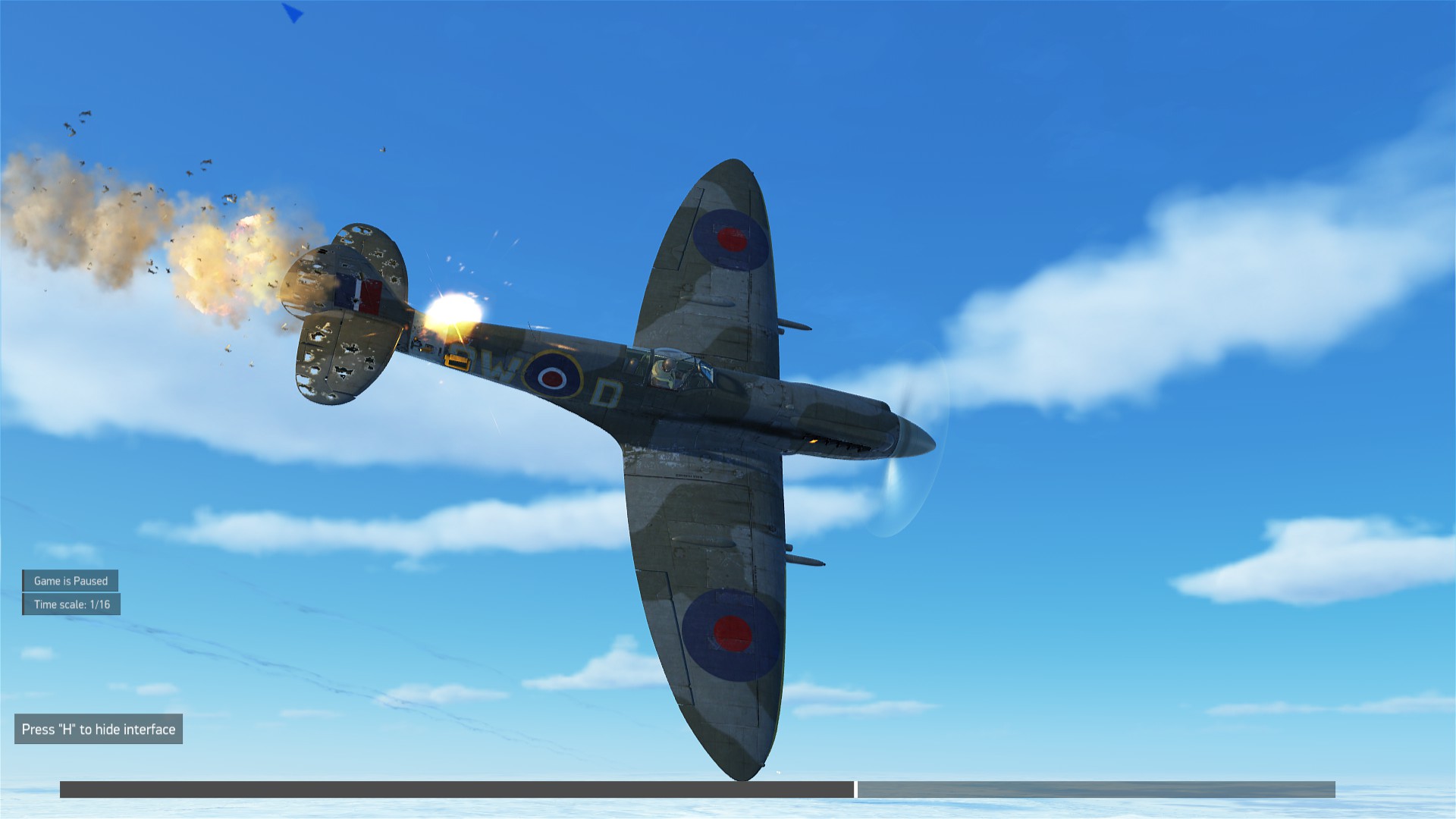 oc2209 Posted May 19, 2021 Author Posted May 19, 2021 2 hours ago, Mtnbiker1998 said: What I think would look good is getting rid of the "level 1" damage effect where only 1 or 2 rounds has hit your plane, but keeping it for showing where shrapnel has hit and showing highly damaged areas of the plane with the big holes and torn skin effects, stuff that the dynamic model doesn't do as well. Also, the DVD has definitely opened my eyes on just how destructive HE ammo is in this game. Seeing an entire wing or entire half of a plane torn to shreds from just a single 13 or 20mm hole is pretty crazy. I always assumed I was being hit by several rounds at a time with the amount of damage being done. The old decals are definitely needed for control surface damage. It'd be great if fabric-covered sections of certain planes could be similarly shredded. Beyond that, I'd like to see all other impacts be 1 bullet/shell = 1 hole. For 20mm HE or larger, the system could use the current (old) holes that go all the way through the plane (i.e, you can see the sky/ground through the hole). For anything AP or smaller HE rounds, leave it all to the new dynamic model. What I'd really like to do away with are the holes that just saturate the entire plane eventually. The above shot is what 17 rounds looks like. Of those 17, I doubt more than 10 actually hit the plane. The next example is even better. The following 4 shots were taken in very slow motion: I honestly don't even think the elevators took a direct hit. And I'm pretty sure that one wing hit is the only hit. I wasn't pulling enough lead to hose the wing. Here's a better shot of the result of the 13mm strikes: None of the elevator holes should be there. None of the left wing root holes should be there. The through-and-through wing and elevator holes look more like what 20mm HE would do. All told, I fired 42 13mm rounds against the Spitfire. Of those, I'm pretty sure only a handful actually hit. (Naturally, the Spitfire, with its glass tail, entered an unrecoverable spin and crashed)