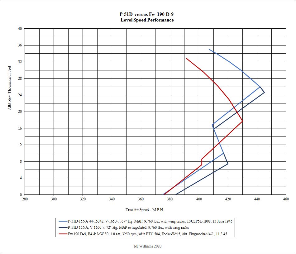 Bremspropeller Posted June 5, 2021 Posted June 5, 2021 (edited) 1 hour ago, LColony_Red_Comet said: But speed is what matters. Nope. Unless you're flying at top speed all the time, which you don't. 1 hour ago, LColony_Red_Comet said: No the 150 octane mustangs will climb right with a K4. Nope. 1 hour ago, LColony_Red_Comet said: But again that plane was largely irrelevant because it barely saw service during the war starting in mid-October of 1944. So that's more than half a year during which it was the main production variant. Hardly "irrelevant" - unless you like to make it fit your narrative. 1 hour ago, LColony_Red_Comet said: No, the 150 octane Mustang climbs just as well, which is the only one that matters for comparison to the D-9. Nope. If we extrapolate that 72''Hg line to 75''Hg, we'll see a roughly 12000ft deep altitude-band where the D-9 climbs better. 1 hour ago, LColony_Red_Comet said: Also the D9 is immaterial because it didnt show up till Sept44, and didnt show up in its 2100bhp version (the one that has its famous performance) until november 44. By 1945 there were only 60 MW50 D9s available. Another arbitrary argument. The D-9 was just an evolutionary step, putting a 1943 engine into the airplane one year late. Not too different to fitting a Merlin into a Mustang. 1 hour ago, LColony_Red_Comet said: The D9 is slower than a Mustang with 150 grade fuel. And its about even with a 67inch Mustang until you get to 25,000 feet and the Mustang soundly beats it. The 150 octane Mustang is faster at a larger set of altitudes, but there is a 7000ft deep altitude-band, where the D-9 is faster. Extrapolate for 75''Hg and we're still at around 6000ft deep. That's not the fastest D-9 data out there. That is with an aircraft Mike Williams deems an "operational" D-9. Seal up that engine-gap and generally polish the airplane and you'll gain at least 10mph right there. 1 hour ago, LColony_Red_Comet said: The N models with biggly range came to late to matter. They flew some pretty interesting missions to Japan, so I guess they mattered very much. 1 hour ago, LColony_Red_Comet said: The fighter bomber can be debated, but its a close race either way in terms of bombing. They carry the same payload more or less, with thunderbolt being a tad better. But the Jug is just that, a Jug. No. The Jug brings at least 500lbs more bombload (plus rockets if you're really into it) and has two more guns for strafing. That's a winner right there. 1 hour ago, LColony_Red_Comet said: Ill note however that you left out that the lack of high altitude supercharger was the bane of the P-40 and P-39 on every front they served on. That includes the Russian front. It made them completely noncompetitive in fighting over 15,000ft, generally caused them to cede the high ground to the enemy, and made it extremely difficult to intercept enemy bombers. But that's mostly an issue with their engine and the lack of foresight in military procurement. The Mustang started with a similar problem and spent 1.5 years at low to mid altitudes, before it came to the front with a proper engine for the airframe. 1 hour ago, LColony_Red_Comet said: Every single country (except USSR) during ww2 moved towards higher performance at higher altitudes as the war went on. The only reason the Russian didnt do this as well was because the strains under which they were engaged things like 2 stage 2 speed superchargers an costly complexity. The P-40s continued production throughout the war was a scandal that wasted industrial resources. The Soviets didn't produce more high altitude engines, because they were doctrinally tied to combined and tactical warfare directly over the front. The soviets managed to copy the Tu-4 after the war and those had engines with turbo-superchargers with intercoolers. Hardly technology outside their grasp. Edited June 5, 2021 by Bremspropeller 1