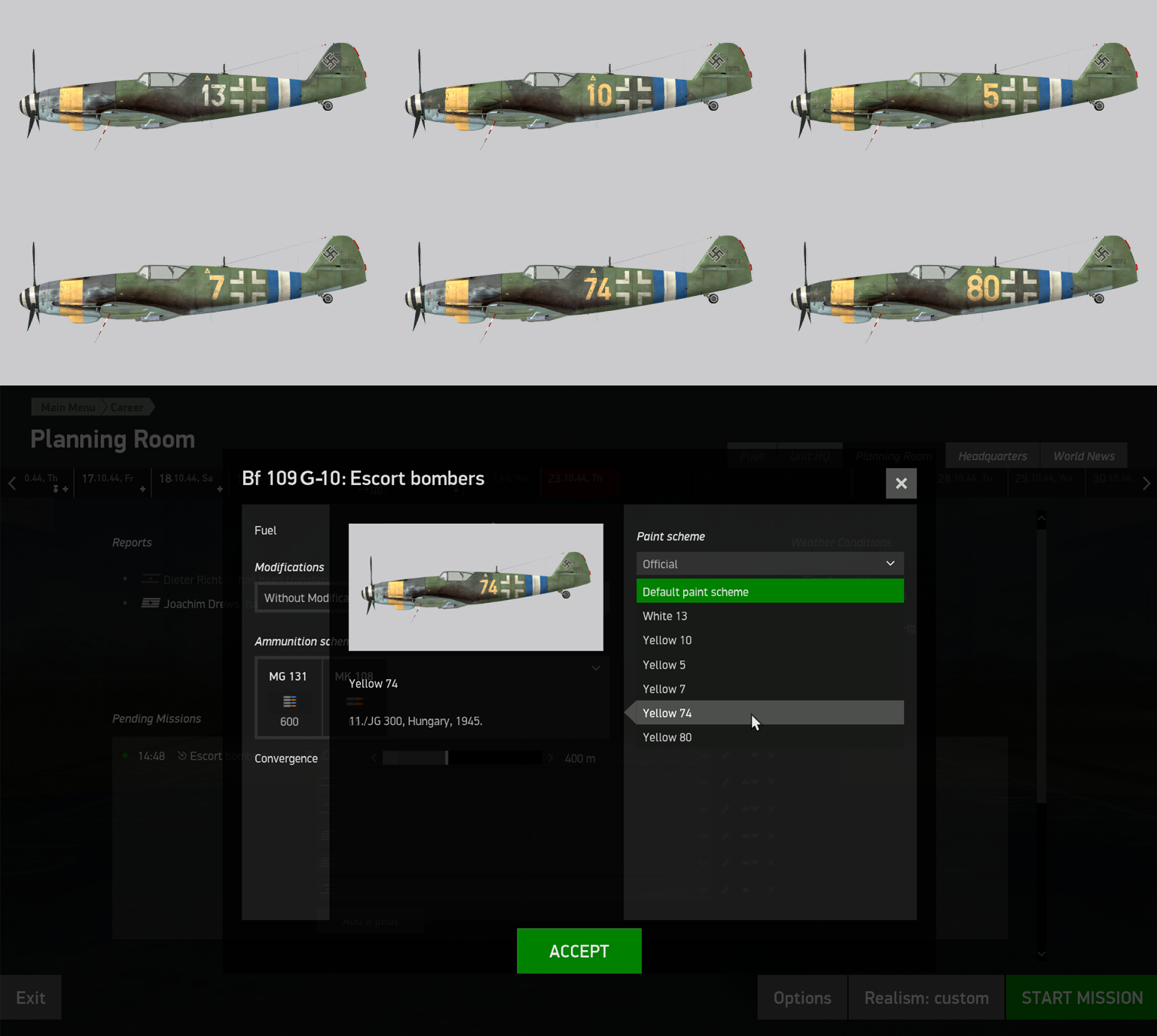 Na-zdorovie Posted May 24, 2021 Posted May 24, 2021 maybe i got wrong end of stick here but you can, just before mission start the plane is in the hangar, after pressing custom you see the plane with the new skin on, downloaded or official