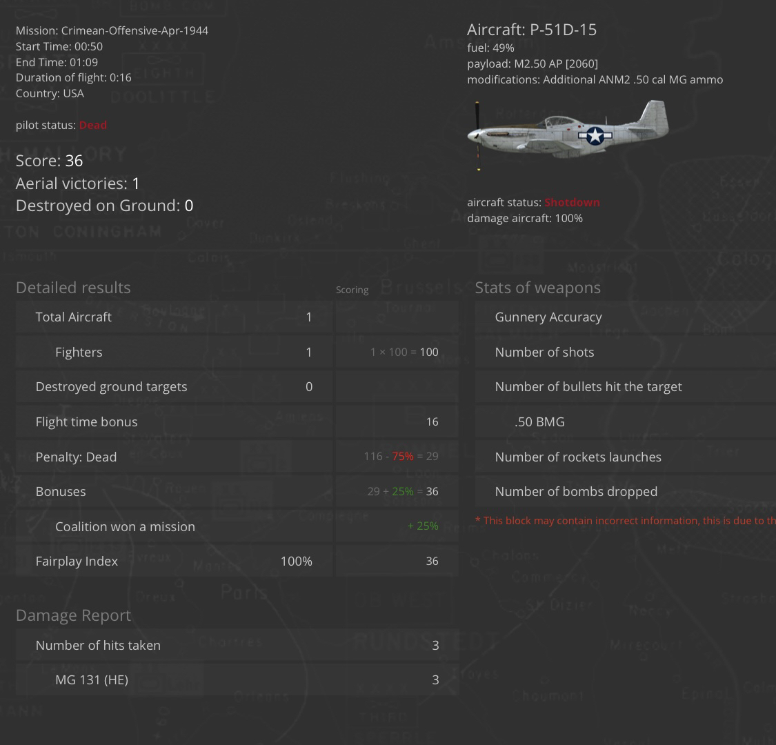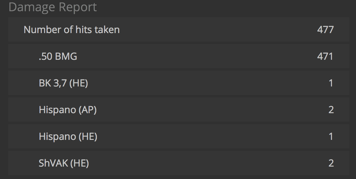 BCI-Nazgul Posted June 24, 2021 Posted June 24, 2021 (edited) 20 hours ago, LukeFF said: But yet, we have people right here in this very topic saying it should take an average of 14 .50 cal hits to down a German plane. Fourteen hits aimed at what, exactly? If you were to randomly spread 14 hits across a fighter I think you can see that the odds of the engine, fuel tanks, cockpit or something else important being hit are pretty high. Just look at a cut away of any WW II fighter, there's not a lot of space wasted on nothingness. So, really "aimed at what" probably doesn't matter much. Again, I will state that the 14 hit number doesn't say the plane went down immediately. This "14" number is also pretty much inline with the 3-4 hits of 20mm that usually downs a plane in game (that's my experience anyway.) The US Navy estimated that it took 3x .50s to equal 1x 20mm. If you do the math this lines up pretty well with 14 hits of .50s being equal to 3 20mm hits. Edited June 25, 2021 by BCI-Nazgul 1