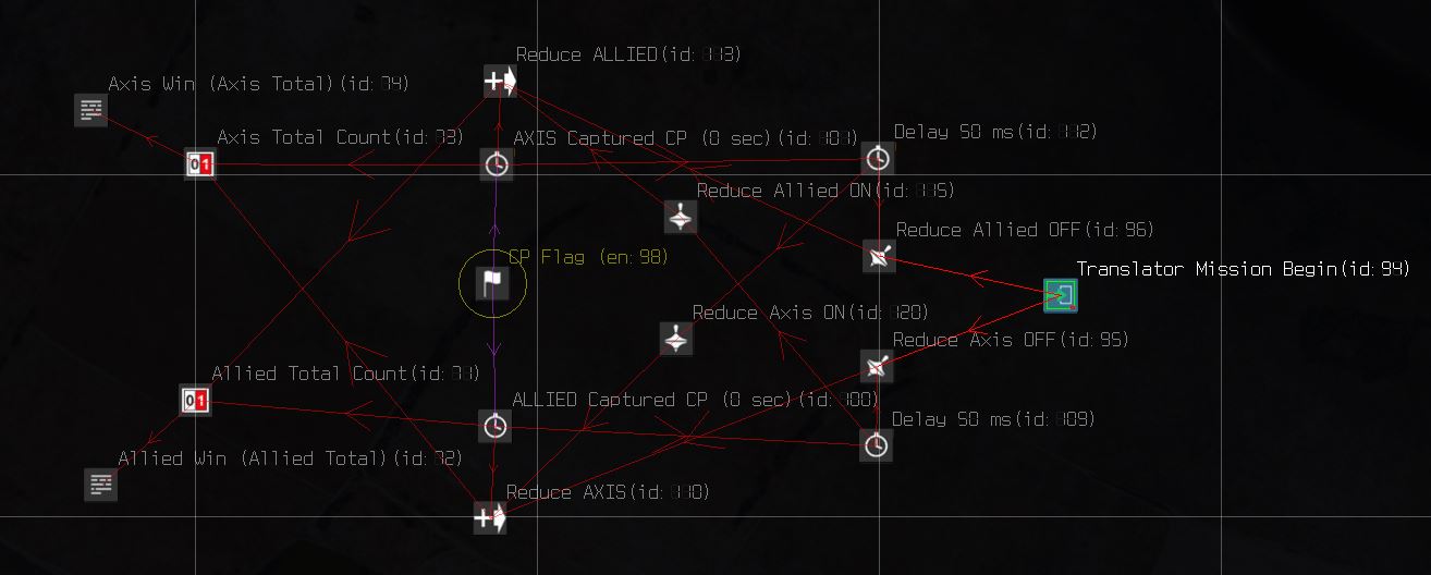 DD_Friar Posted June 15, 2021 Author Posted June 15, 2021 (edited) Having tested the code provided by @JG4_Deciman I can confirm it does work as required. I have streamlined the logic into a logic diagram for 1 flag so you can see how it works. Many thanks to all those who have chipped in on this. Notes: The "Reduce Allied" and "Reduce Axis" have Data(0) set to -1 with a Parameter of 0 Salute DD_Friar Edited June 15, 2021 by DD_Friar