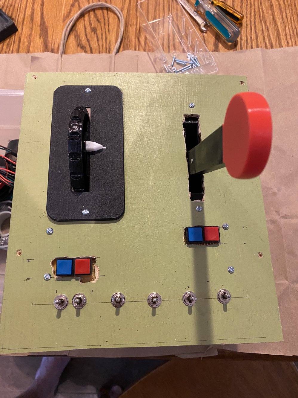 Dagwoodyt Posted August 24, 2021 Posted August 24, 2021 (edited) A couple of Xmas's ago I got a Hakko soldering set and a magnifier desk lamp as presents and proceeded to make a DIY button box/throttle. I decided to use the BU0836X since it would not require any programming skills. The 8-way hat switch, buttons and some switches I bought from the Bodnar website. I think the project took about six weeks. Much of the "devil" in the details consisted of ensuring good solder joints and finding good fixtures to hold parts while soldering. Sites that deal with radio control airplane supplies were a source of connectors and specialized tools. From the start I focused on a setup that would lend itself to the VR environment. For example, non-latching switches could be set at right angles to one another so as to more easily differentiate elevator from rudder and aileron trim. The unfortunately tiny Bodnar 8-way hat switch works fine for setting gunsight range and wingspan. Slide pots I included out of curiosity. If wired incorrectly you will know from the burning odor ? The consequential thing I did was to include a 3-turn pot that I mounted on the side of the box. I am using that for throttle and it makes a world of difference in terms of fine control for landing and taxiing. Not only that but lack of a throttle lever makes all the switches easier to access. I used a standard enclosure from Amazon. It measures 14x22x9cm. All the switches are little more than a handsbreath away. The entire box is a fraction of the weight of the throttle I had been using and takes up consideralbly less desktop real estate. It sits atop a silicone pad and does not move despite the light weight. In fairness I will mention that I also use a Gunfighter Pro with MCG grip as well as VoiceAttack so there is no need for a more complex DIY throttle. I am beginning to view throttle levers as something of a fetish. I can go back to using one at any time but for present I prefer using the DIY box. Edited August 24, 2021 by Dagwoodyt 2 1
