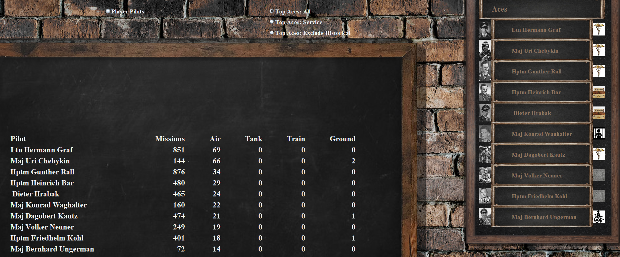 Varibraun Posted October 18, 2021 Author Posted October 18, 2021 7 hours ago, oFlyingDutchman said: How many kills the first one on aces of aces have right now? I'm tempted to try it so i can get FC1 From his post below, looks like @Hetzer-JG51 is at 204, but based on the thread history, I don't think he is flying his pilot (Maj Steffner) right now. It was his success in flying PWCG Ironman pilots that gave me this whole idea. He has some great stories in this thread and over in the PWCG "Interesting Mission" thread. 1