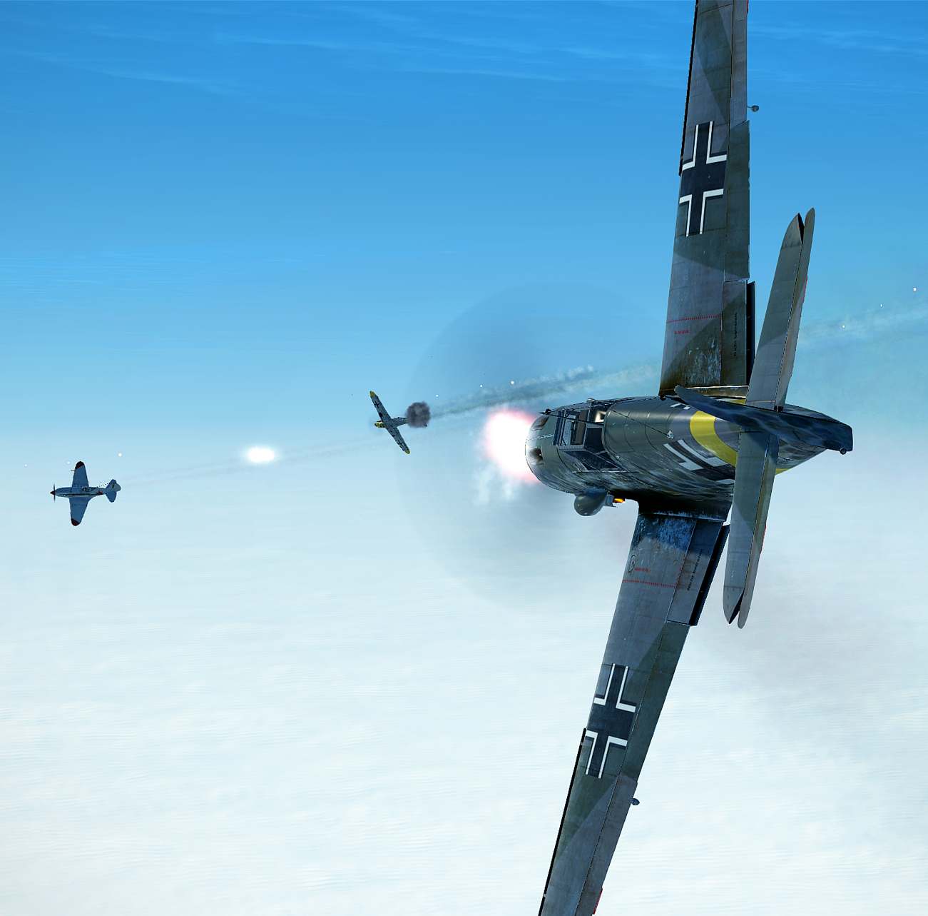 grcurmudgeon Posted August 15, 2021 Posted August 15, 2021 (edited) Mission 36 for Lt Litvyak Attempt IV brought one of those new in-game experiences (new for me at least). Lt Attempt's flight of 6 ran into a similar number of FW-190s and a nice furball ensued. She got on the tail of one, and in the turn pulled her nose ahead of it so it dipped just below, fired a burst, then eased up to see the results. At first it looked like nothing had hit, but then she noticed a small orange flare on the left side of its engine. Over the next few seconds the entire engine became engulfed in flames, and she turned away looking for another victim. Normally I see damage right away from hits - explosions or immediate smoke. It was really cool to watch the fire build over a short period of time from what was likely one lucky hit in the right spot. Mission 37 was a near disaster. She took a flight of 5 up on an intercept and came across a pair of 109s, a G-2 and an F-4. 3 of the flight went after the F-4, while Litvyak and the remaining Yak when after the G-2. Litvyak got on its tail and was working into a firing solution when her wingman started shooting over her canopy. She pulled off and watched him hound the 109. Making the mistake of thinking things were under control, Litvyak saw some more dots lower in the distance and went to go check them out. She found a flight of He-111s cruising just over the mountains and started circling down. Just as she's getting ready to line up a gun pass, her whole plane shuddered and one round hit her! With the plane falling apart and blood splattering the cockpit, she bailed and watched a 109 go flashing by. She should have known better than to trust her flight to handle a pair of outnumbered 109s. Luckily she made it down in one piece in friendly territory, and vowed next time to stay circling above until she knows her wingman has splashed his target. Edited August 15, 2021 by grcurmudgeon 5
