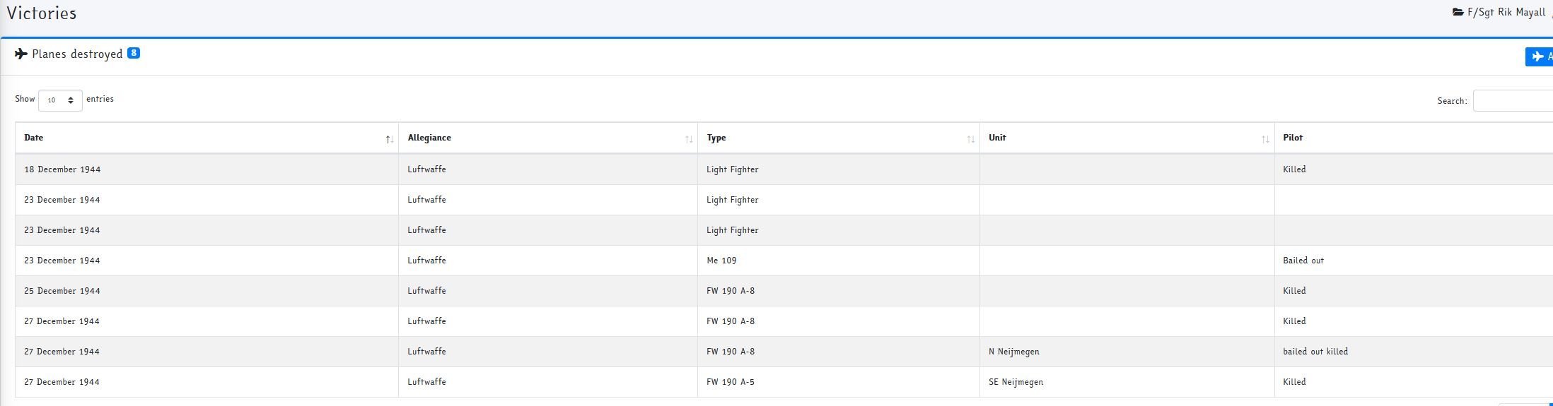 kozmo514 Posted October 7, 2021 Posted October 7, 2021 Attempt number two. Flight Sergeant Rik Mayall is going to crush Johnny Johnson! Holland, December 1944, flying for RCAF Spitfire IX. Mission the first: routine free hunt with six other squadron mates over Arnhem. Two Messerschmitts intercepted and shot down. No joy for Mayall. RTB and land only to hear airfeild sirens begin to wail announcing an enemy incursion. 2 cheeky buggers in the form of Messerschmitt 109s are interfering with the squadrons landing activities! Flight Sergeant Mayall sits in his cockpit at the end of the runway, engine running, contemplating his next move. Safe Option: shut down an end mission. Beat Johnson option: turn around to line up on the runway and take off for intercept. As he accelerates down the runway (against The landing pattern no less) one thought occupies his mind: this is a splendid way to be shot down by an enemy with altitude and energy superiority; this will get messy! Fortunately Mayall survived and even destroyed one of the messerschmitts. Flight Sergeant Mayall is on the board! 1