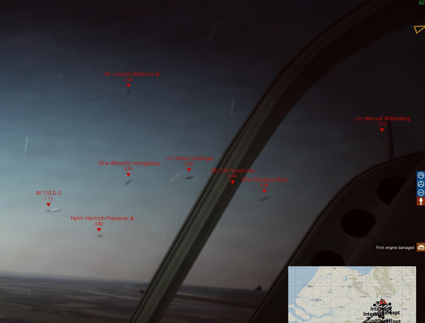 kozmo514 Posted October 9, 2021 Posted October 9, 2021 There have been eventful times, indeed, for our very intrepid and slightly reckless Flight Sergeant. Three missions above the snowy landscape of Holland have resulted in a few more kills and one very close call. Just south of Doetinghem, Mayall took damage to the engine from a 109 pilot. Breaking off his attack on another 109, he decided to dash for friendly territory, fearing his engine will seize up. Fortunately, the Spitfire held up and made good his escape, landing safely at an airfield nearby. Early the next morning, the 401st was up again, this time providing CAP over Neijmegen. A rather large group of FW 190's challenged the sqdn resulting in two kills for Mayall. One pilot bailed out as his Focke Wulf caught fire, but his altitude was too low for his chute to open before he struck ground. The second pilot went down with his plane with a spectacular fireball explosion near the Waal. Ansirial's little app is wonderful! Great way to capture the details about each flight, that are not displayed or editable with in IL2GB. 3 1