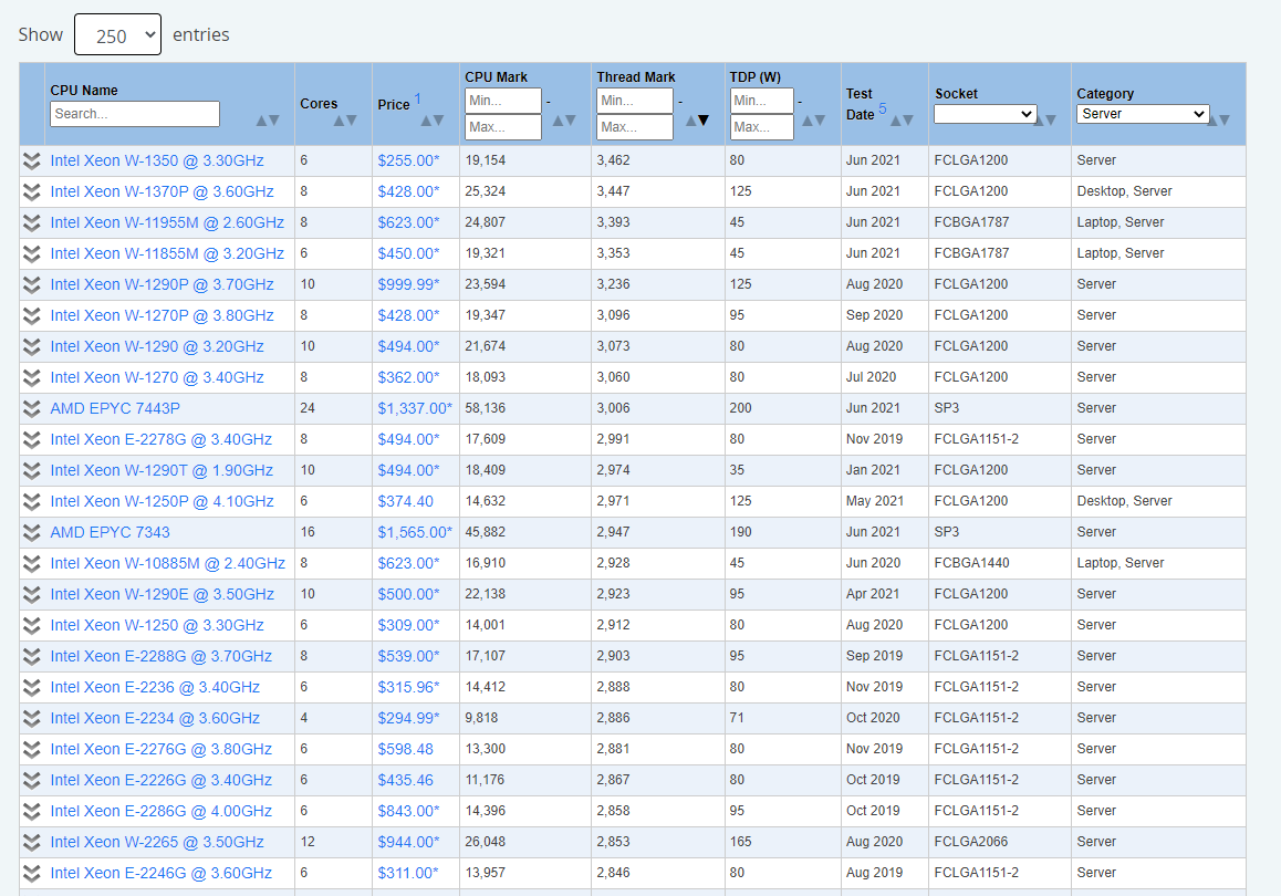 chiliwili69 Posted July 22, 2021 Posted July 22, 2021 From last spring Intel released those 6 and 8 cores Xeon processors which are cheap (255$ the W-1350 with 6 cores) and very good at single-threaded, on pair with the Ryzens 5900X and 5800X!!! They use the socket FCLGA1200, the same than the Intel 11th gen, so there are plenty of Mobos for that. They are listed here https://www.cpubenchmark.net/CPU_mega_page.html (filtered by Server and shorted by Thread Mark) If you have a motherboard with that socket or are thinking on an upgrade, those new Xeon chips could be a worth option. If anyone press the button, please test them with the SYN_VANDER CPU test. Thanks!