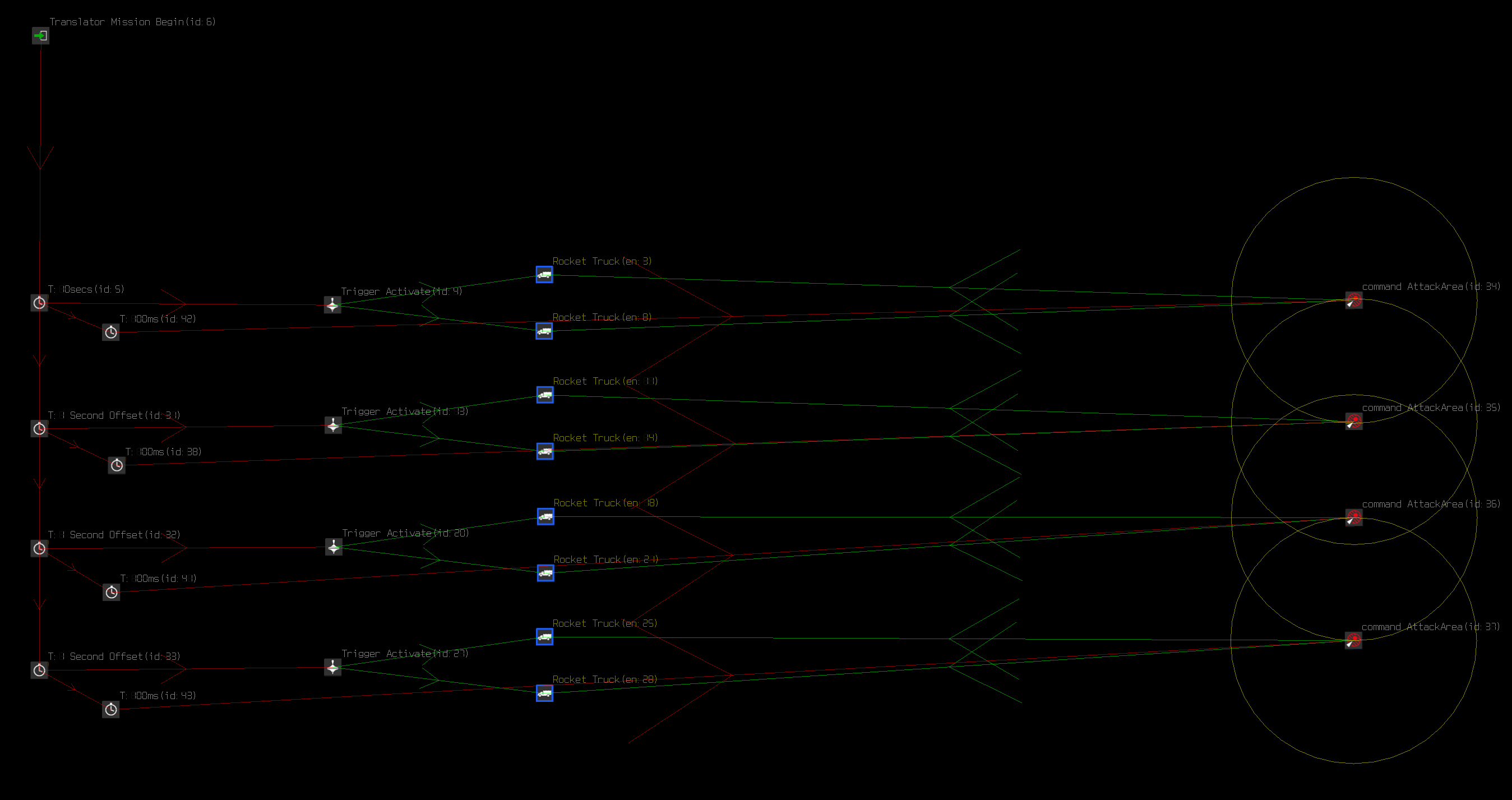 Sketch Posted October 30, 2021 Posted October 30, 2021 What you could do is activate a group of them a slight intervals. Then they'll have the 'continuous fire' effect you're looking for. In the image below, I have a 1 second offset for when the rocket trucks are activated. The groups all fire at 1 second intervals because of how they spawned in. 1