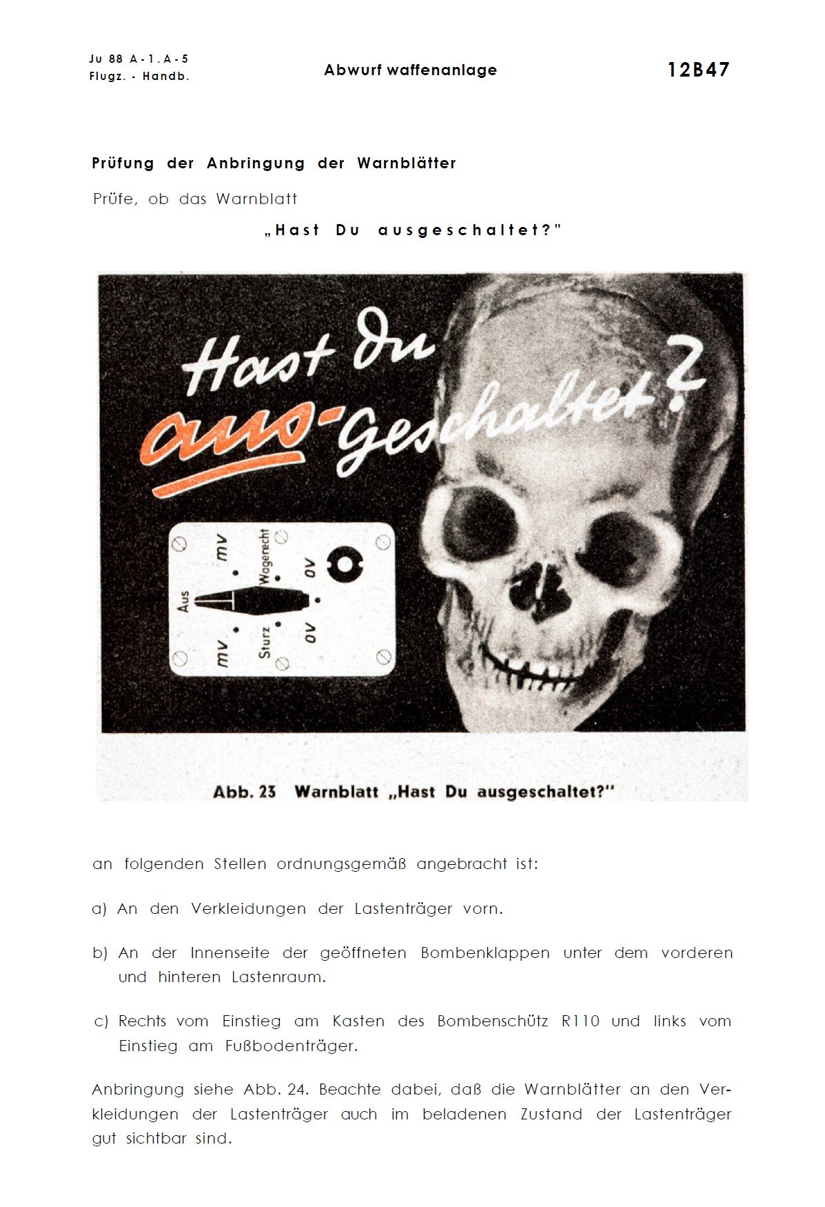 RedeyeStorm Posted October 31, 2021 Posted October 31, 2021 Hey guys, I am flying a Ju-88 career campaign and I noticed that on the right cockpit panel there is a decal with a skull and the text ‘hast du ausgeschalted’. What’s up with that?