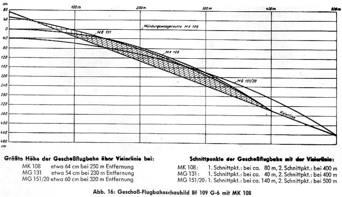 Jaws2002 Posted November 5, 2021 Posted November 5, 2021 (edited) 1 hour ago, Yogiflight said: Mainly correct, but the bullets of the engine guns of the Bf 109 F-K were flying parallel to the engine mount, which means 40',(2/3 of a degree, if I am not completely wrong) upwards, so more or less horizontally. For the convergence setting, the gunsight was set, so the pilot's view crossed the trajectory of the bullets in 400m (later models 500). Then the machineguns were set to convergence. I would guess, that it was the same for the 110, with its 20mm guns being located under the radio operator's compartment. So it would have have been difficult to let them shoot upwards. Yes, the motor cannon was coaxial with the engine, but the engine was pointing slightly up (two third of a degree) and that brought the bore axis up by four meters at 400m. The 30mm MK108 trajectory was coming back down in the gunsight at 400m. Edited November 5, 2021 by Jaws2002