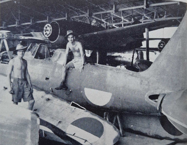 Heliopause Posted September 15 Author Posted September 15 As transport capacity is still lacking a number of Japanese aircraft are also used to start the first "airline" on Java under command of Capt. H. Arens. A number of Japanese pilots and later also Arens himself and pilot Lukkien will fly the route Batavia - Bandung - Semarang - Surabaya. Capt. Arens seen in "the office" of a Ki-54 White paint and green crosses applied on a Ki 54, October 1945 The last of these planes operate out of Andir in 1946 for reconnaissance and photo reconnaissance. Some of the Japanese planes found post war. A number had Indonesian roundels applied. Kawanishi N1K1 floatplane fighters in the back 2