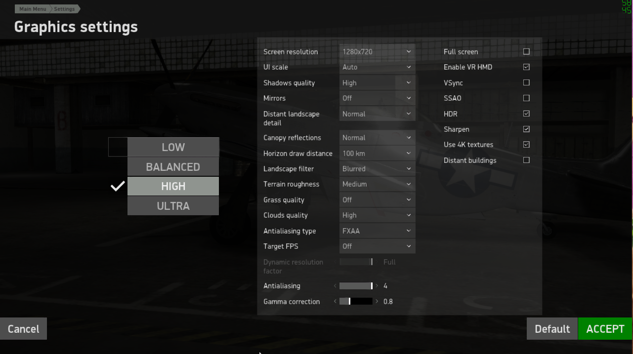 dawud Posted December 21, 2021 Posted December 21, 2021 (edited) i´ll play with some HDR/Sharpness/Filter options until a fix will be on the Horizon Clouds are on max.. not everything else tho´ due to VR beeing a real performancekiller. Edited December 21, 2021 by dawud