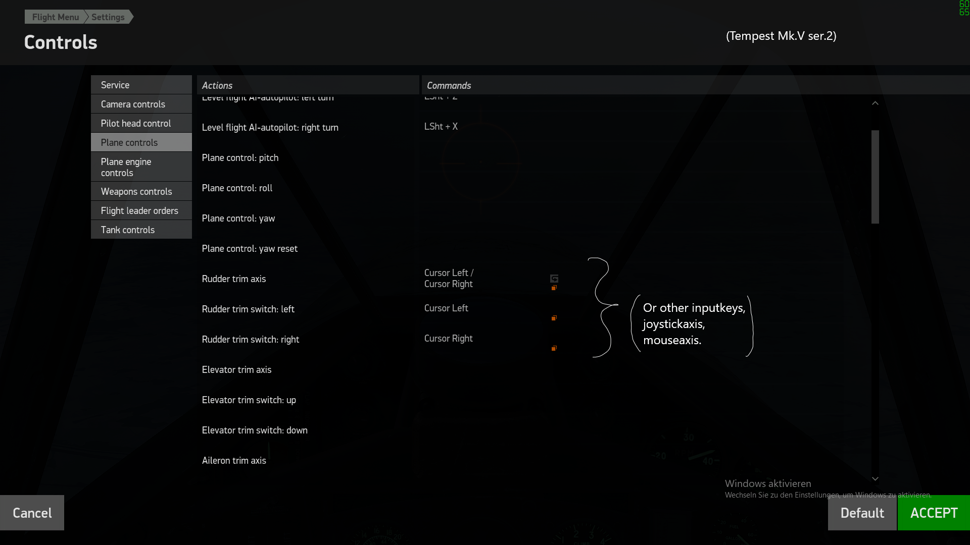 THERION Posted December 12, 2021 Posted December 12, 2021 23 hours ago, Sinus707 said: Hi, I am pretty new in this game and I realised that the trims not working. To make it easy, I took the default settings, so the elevator trim is attached with RCtl + Cursor up/ RCtl + Cursor down. I take the Yak 1 ser.69, when I press these keys nothing happens. I have this problem with any plane. Every trim, yaw, roll and pitch is not reacting. I am aware that 109 and 190 work with stabilizer. I tried the axis and switches individually. Furthermore, I tried with different keys, attached it with joystickaxis, deleted everything else, reinstalled it. What do I forget?? Hope someone can help me... Make sure you assign every option with your desired keys, so f.ex. push buttons but also the axis. See here: If you leave out one of these options, they won't work! Here in this example the "Aileron trim" will definitively not work, because the button are assigned, but not the axis. Check this. Cheerio