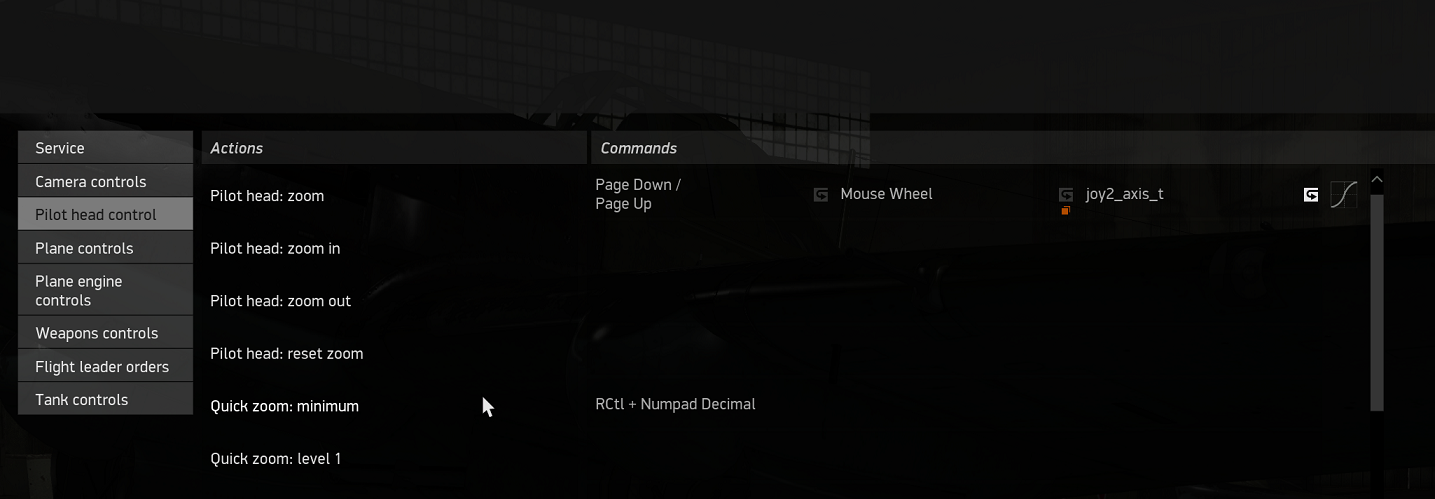 TonyMM Posted December 15, 2021 Author Posted December 15, 2021 11 hours ago, Remontti said: Zoom can be binded to a axis. Make sure you have binded the correct controls. The relevant controls are under Pilot Head Control tab: Pilot head : zoom - bind a axis here Pilot head: zoom in - a bind for button Pilot head: zoom out - a bind for button Note that you need to hold button down if you bind the zoom in/out controls. Under camera controls you can change how fast zoom works. If it still doesn't work I would check that joystick buttons do indeed work in game. Try binding them to guns so you can easily see if it works. THANKS for the hints !? I had to look not into camera but into head movement and zooming etc....Zoom max, min, steps etc....It works now! Thanks for the hints! ? ? 1