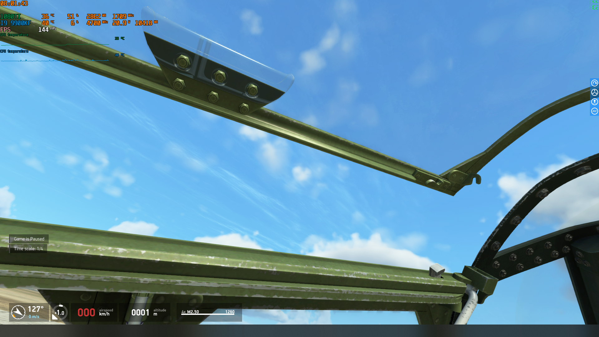 Can confirm the missing upper canopy frame on the birdcage version when 150 grade fuel is selected.