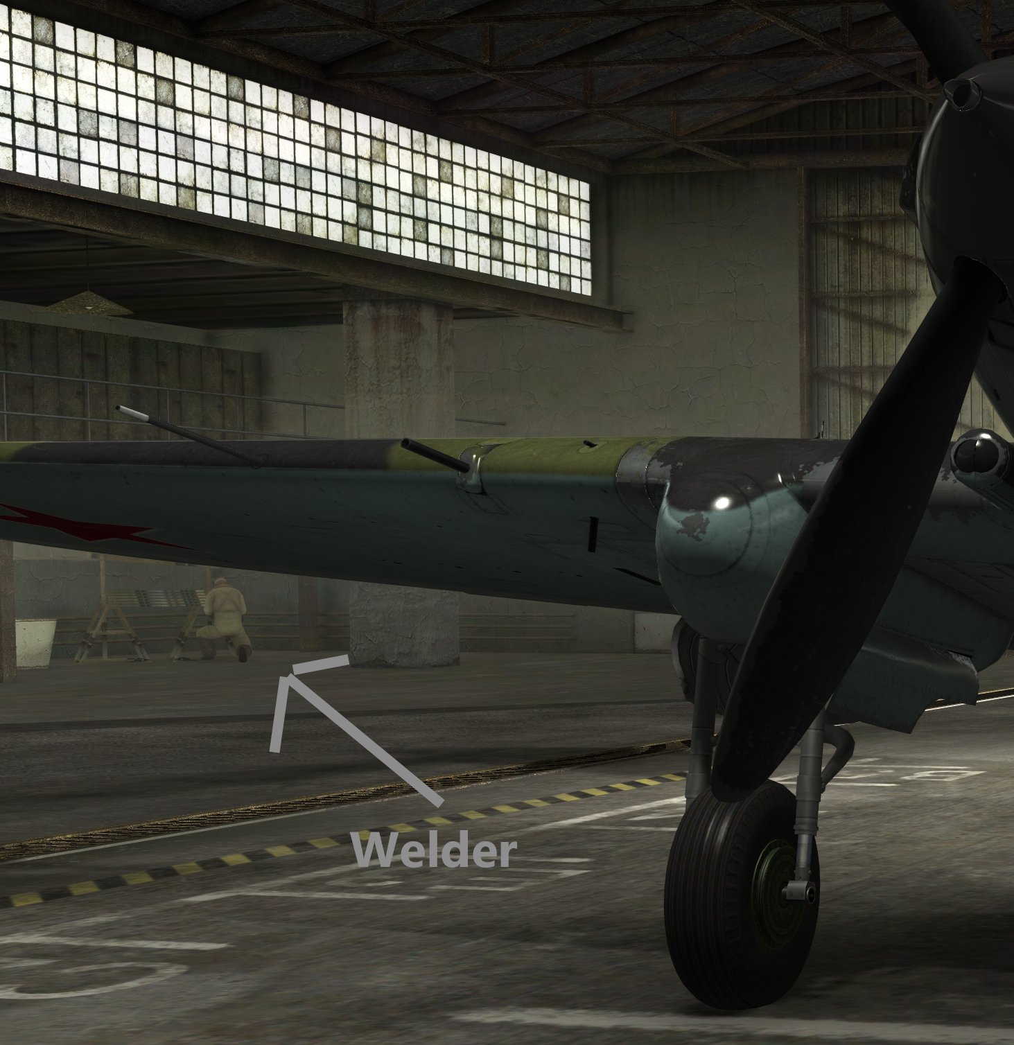 By the way in the past there was a person in the hangar doing the welding and we could see the sparks and weld arc flashing. It is a pity that since many years we lost that animation. I don't understand why. After all an animated hangar would be much nicer and immersive, with hangar work sounds.