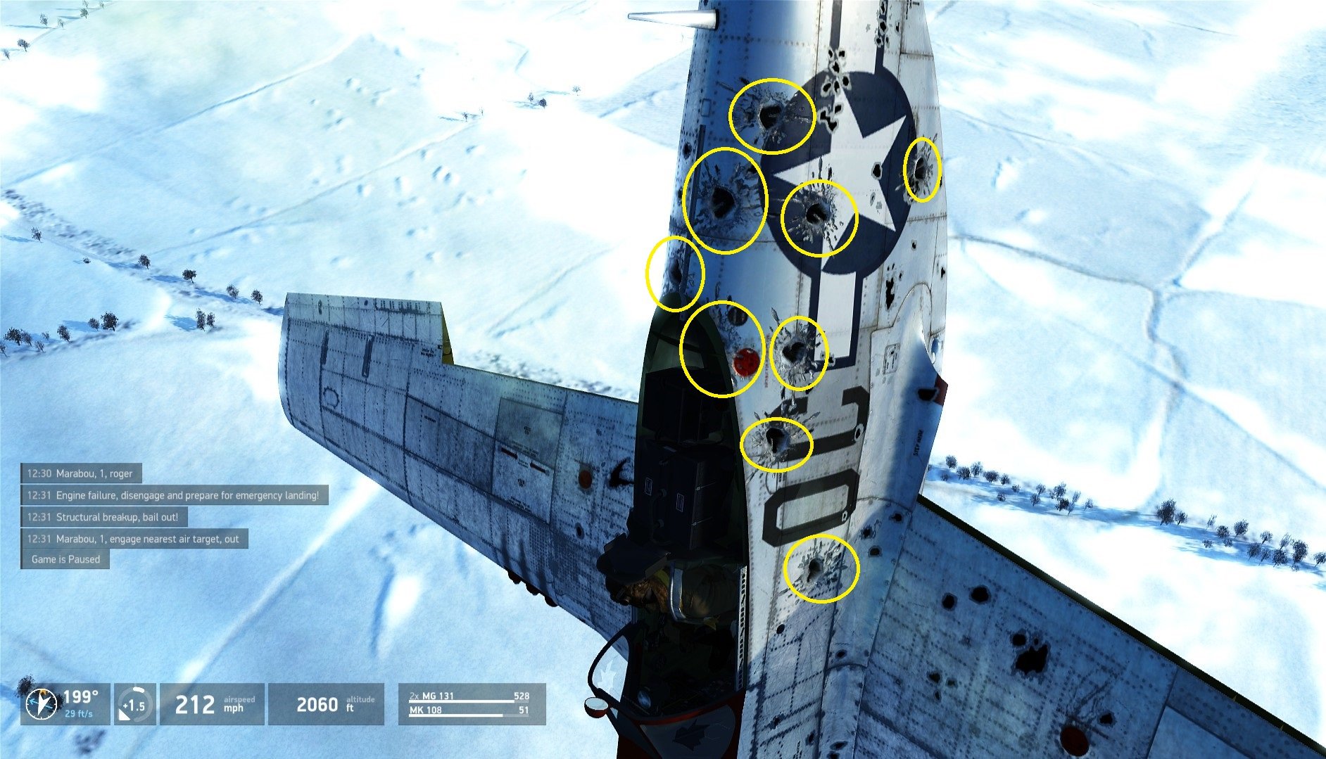 When there are parts of the planes that can 'eat' 30mm shells with impunity, it leads to even more implausible examples: