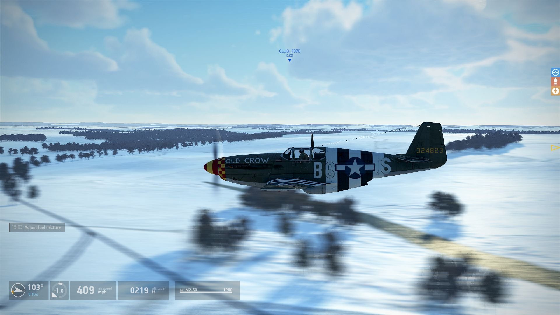 ICDP Posted January 1, 2022 Posted January 1, 2022 4 hours ago, CUJO_1970 said: I'm afraid not, at least on winter maps...the standard P51B with the -3 engine, even without 150 grade fuel does an absurd 406 mph on the deck on a winter map...it is a full on 35 mph faster than an A6. The P-51B with the -7 engine, not even needing 150 grade fuel does 411 mph on the deck on winter map and is at least 40 mph faster than A6. In fact, on winter map the standard P-51B without 150grade fuel with -3 and -7 engines are 31 mph and 36 mph faster respectively on the deck than a fully boosted FW190D-9. Here is the current state of affairs, comparing -7 Mustang with regular fuel and fully boosted FW190D-9 on winter map: Then there is a problem with the P51B getting those speeds in winter I would say. Though that kind of backs up my point that deliberately giving up your speed to turn fight in a P51B throws away a large advantage. What you are describing for the knife fights is fine margins and leaving a lot to chance that the other pilot is an idiot, who only knows how to pull the stick back into his gut. My experience of MP is all people gaming the game and utterly unrealistic low and slow turnfights in the weeds. People stealing kills, shoulder shooting, rage quitting, moronic long chases all over the map to get a kill, barley any teamwork, the single track mindset that it's not a kill until they explode or a wing comes off. Yes you can get a good server and a decent session with a squad but most MP servers fall into what I just described. I've been there and done that in the old IL2.
