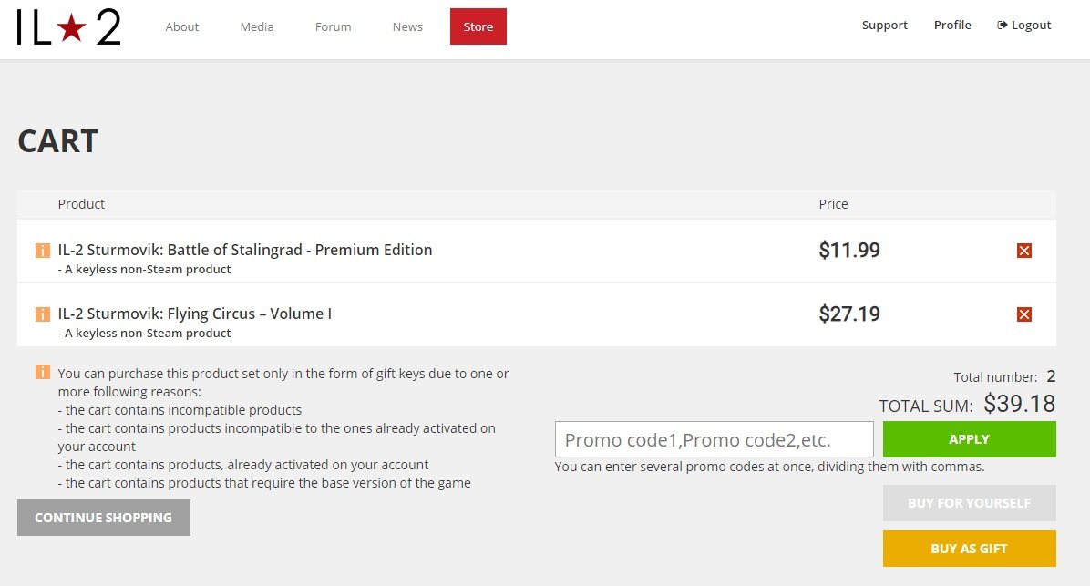 Patricks Posted January 7, 2022 Author Posted January 7, 2022 (edited) I appreciate the input, but the "solution" you propose was already obvious to me, and what I am doing now. My thought is it doesn't matter if I have two installs, I paid for every module, all extra planes, all terrains, and every available campaign and should be able to play them in both installs if they are on the same machine. If you buy on IL2 Store you can play everything you purchased there on BOTH the Steam and IL2 Installs. The two Steam modules I erroneously bought when I started out are not available on the IL2 Install. I tested my theory and just purchased the two modules (as gifts) from IL2 Store, was going to uninstall and remove the Steam version, but then saw that the gift licenses can only go to a different email address than mine, registered on the site.. so I put in a Support request. Sounds like Drum's advice was spot on, but i'll wait to hear back from Support before I send them to a buddy and give up.. Edited January 7, 2022 by =LD=Icer