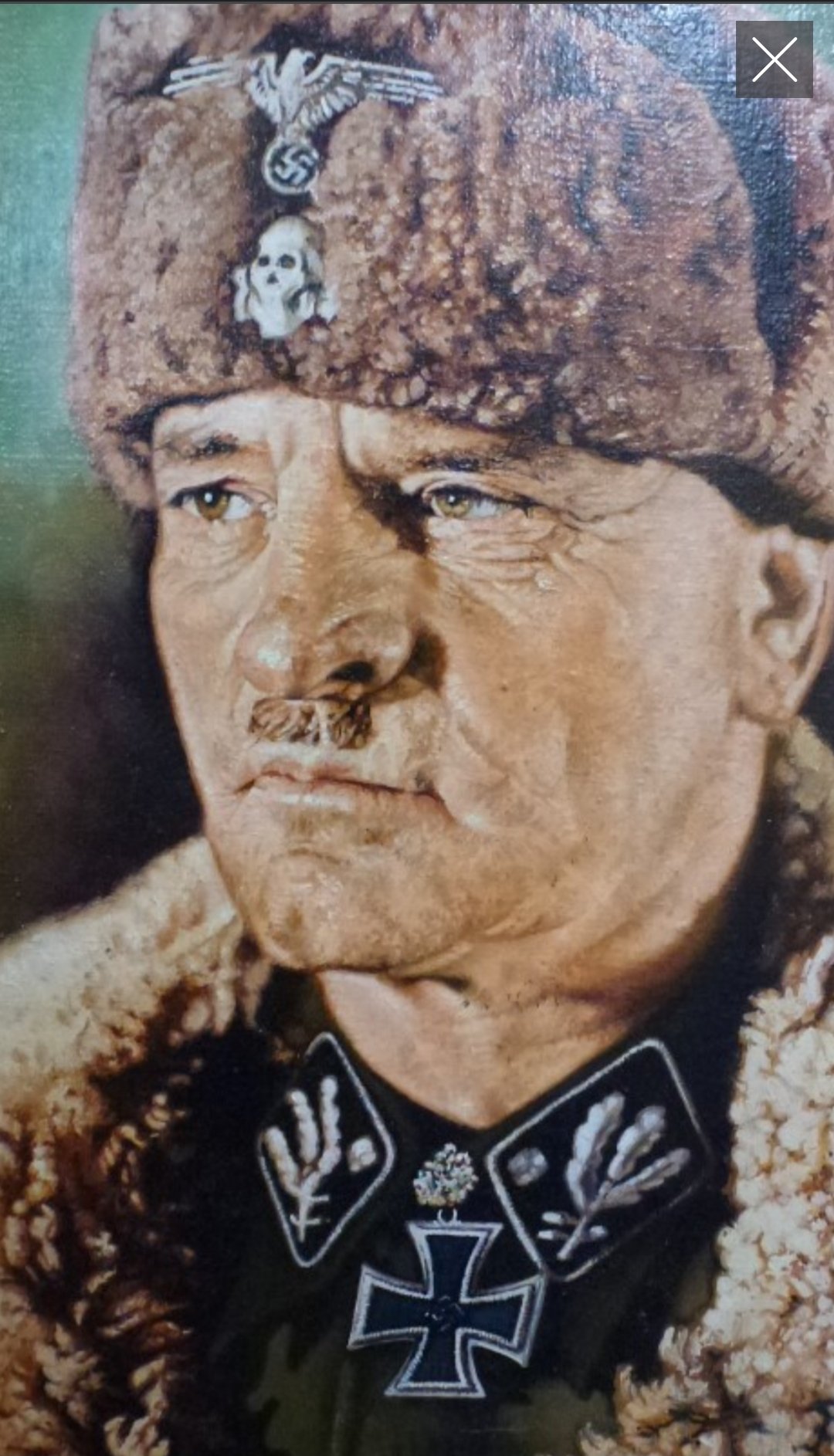 Monksilver Posted January 31, 2022 Posted January 31, 2022 (edited) @Mysticpuma The deaths head on the hat points to him being SS. The collar badges show he is a Gruppenfuhrer which is the equivalent of a lieutenant general. As a senior SS officer we can also work out he was piss poor example of humanity. I wonder if is the person below. Arthur Phleps who reached the next rank, obergruppenfuhrer. He got the Knight's Cross in 1943 which helps dates your picture. Wikipedia has more on him - which is also where I found a list of senior SS officers and so just went down the list to see had that type of moustache and nose. Edited January 31, 2022 by Monksilver 1