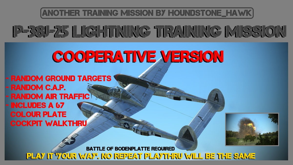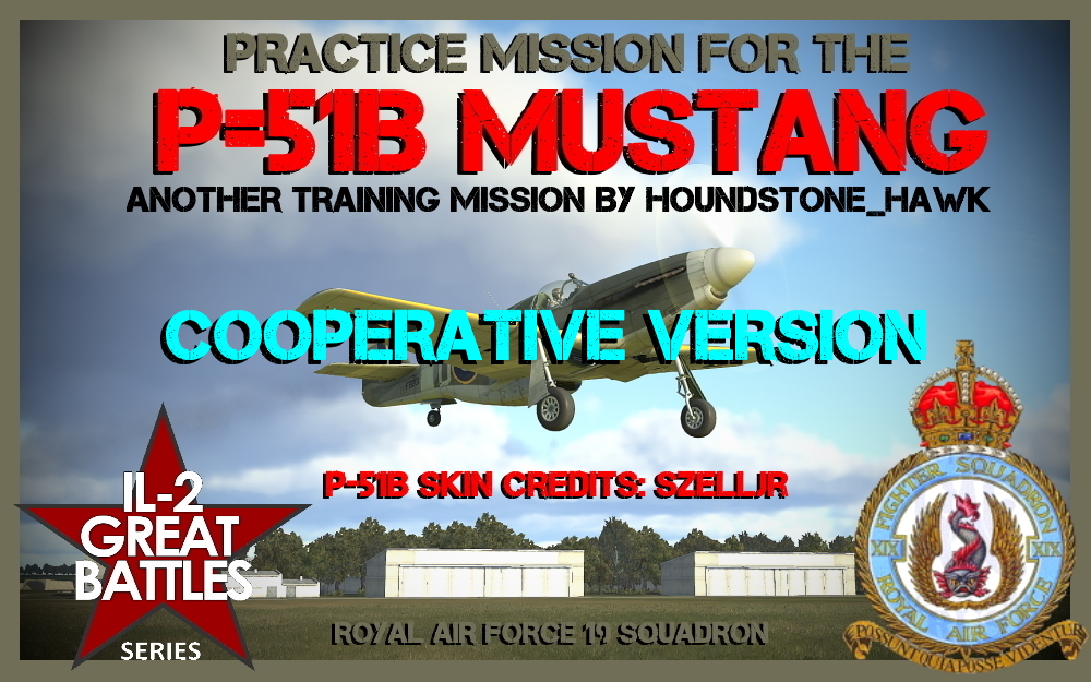 GSHWK_Houndstone_Hawk Posted February 13, 2022 Posted February 13, 2022 (edited) Hawkinge Combat Air Patrol Training Flight - Cooperative Version Hawkinge, Kent. July 1940 Updated Oct 2022 for compatibility with 5.001 https://www.dropbox.com/s/ywm4ob82h97gum2/Hawkinge_CAP_Training_Flight_MP.rar?dl=0 This Mission: As a promising up and coming Polish Fighter pilot, you've been assigned to RAF Goshawk Squadron, flying Hurricanes. Both yourself and a fellow countryman are part of a 3-ship combat air patrol training flight this morning with Squadron leader 'Buzzard' Stevens. This is the real thing gentlemen. This is what you've been training for. The flight is codenamed 'Rabbit' and you are flying as 'Rabbit' THREE. Rabbit Lead will be issuing orders and giving out advice throughout the flight. Be sure to listen. Stick close to him at all times (with the exception of landing. Currently the AI are reluctant to land so when it comes to returning back to Hawkinge, fly solo whilst heeding his advice) ... Good luck gentlemen. Advisories: Originally designed as a Single Player mission, please remember that it was designed to be flown as Rabbit THREE. For the best Co-Op experience, use Rabbit THREE & TWO first & foremost & Rabbit LEADER only as a last resort. The mission uses many custom audio files. Be sure to turn down the ingame radio chat by pressing Left Control + NumPad minus at mission start so that the leader may be heard. Plates will appear on screen to accompany audio; sometimes at delicate times like take off etc but they are semi-opaque to help you. Due to the limitions of the editor, some audio files 'may' overlap if 'you' are in too much of a rush (taxiing and landing for example). Notes: When Rabbit LEAD and Rabbit TWO pull out of parking, you have the option of following and staying on-mission or staying put and firing a flare (Left Control + 1 then click LMB). This will initiate a three and a half minute Hurricane Cockpit Familiarisation presentation. Similarly you can stray off-mission, and fly north over Cantebury to initiate a helpful five minute presentation on Hurricane Flight, Engine Management and Primary Instrument Basics. It would be a good idea to engage Autopilot Level Flight for this (Left Shift + A) or at least trim the airplane with sufficient height. RABBIT LEAD will give out engine power settings and remember that these are 'guidelines' only. To stay with the formation, you should be constantly moving throttle controls back and forth as well as closing the radiator for extra speed etc. Guildeline power settings used are: Climb: +9 Boost - 2850 RPM Cruise: +7 Boost - 2650 RPM VERY IMPORTANT: ALWAYS power Up with RPM first, then Boost and ALWAYS power down with Boost first, then RPM! To Install: The zip is JSGME compatible but if you'd like to install manually, follow the instructions below. Place the 'Battle_of_Britain-Hurricanes' Folder into your default 'Cooperative' folder. An example of the correct path should be ... IL-2 Sturmovik Great Battles > data > Multiplayer > Cooperative > Battle_of_Britain-Hurricanes > Hawkinge_CAP_Training_Flight (Media folder: IL-2 Sturmovik Great Battles > data > Multiplayer > Cooperative > Battle_of_Britain-Hurricanes > Hawkinge_CAP_Training_Flight-media). Requirements: Battle of Normandy (map) Hurricane Mk.II (Collector Plane) Ensure the Hud is enabled ('H') for onscreen plates and messages. Make sure that the 'Show HUD by default' box is 'checked' in Flight Interface settings ingame. Press 'H' (Show/Hide HUD) if you no longer wish to have the tutorial plates obstructing your view but remember to turn the HUD back on to receive onscreen messages etc. This mission is not intending to portray historical correctness. Credits: Music: Ron Goodwin Hurricane Skins: Raptorattacker U2 'Tiger Moth' Skins: sammydee Flight Testers: SpanielGaming, Grizzly & Baron This is another Houndstone_Hawk Training Mission (Sep 2022) Warning: This mission contains media files and custom skins hence the large download size of 145 Mb Practice Mission - P-51B Mustang - Cooperative Version Updated Oct 2022 for compatibility with 5.001 https://www.dropbox.com/s/ne0mo30wvhs7yfi/Practice_Mission_P-51B_Mustang-MP.rar?dl=0 This Mission: Practice Mission - P-51B Mustang Welcome to RAF 19 Squadron. Welcome to Grimbergen, Belgium. You are Rabbit Leader, commanding a 4-ship Mustang flight on today's errands. Tasks are varied and encounters are random so no repeat play through will be the same. There is even a random chance that your training flight could start with an immiment Luftwaffe fighter attack. Objectives include teaming up with fellow Mustangs from Angel flight in the providing of fighter cover for 8 RAF B-25D Mitchell Bombers, codenamed Dogrose, as they attempt to carry a bombing sortie of Bierset airfield. Other objectives include Combat Air Patrol sorties of which there are 2 hotspots on the map. Encounters will be random in both aircraft type as well as numbers and altitude. There is also a ground attack objective area which will again, spawn a random target type. At the mission start, after the intro, you will have the option to view a 62-plate colour illustrative cockpit familiarity guide by firing off a flare from your cockpit. To Install: The download is JSGME compatible and is the easiest way of installation but if you wish to install manually, follow the instructions below. Place the 'HSHawk SP Missions' Folder into your default 'Missions' folder. An example of the correct path: IL-2 Sturmovik Great Battles > data > Multiplayer > Cooperative > Practice_Mission_P-51B_Mustang (and the media folder: IL-2 Sturmovik Great Battles > data > Multiplayer > Cooperative > Practice_Mission_P-51B_Mustang-media). Skins: IL-2 Sturmovik Great Battles > data > graphics > skins > P51B5 Requirements: Battle of Bodenplatte (map) Battle of Normandy (P-51B/C Mustang) Ensure the Hud is enabled ('H') for onscreen plates and messages. Make sure that the 'Show HUD by default' 