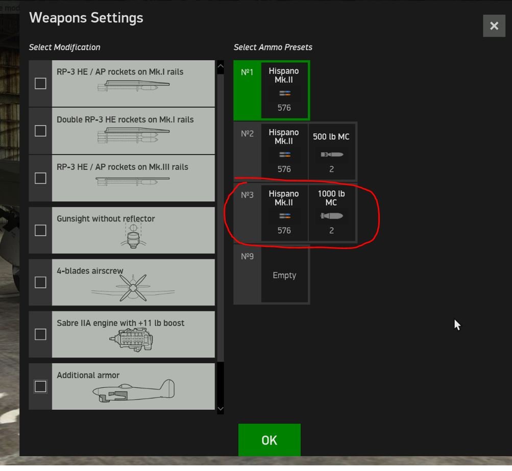 JimTM Posted February 17, 2022 Posted February 17, 2022 21 minutes ago, DD_Friar said: Salute @Sketch and @JimTM Many thanks for your replies. I have now managed to get the results I wanted. I think it is relevant to point out to anyone else wanting to do this the important thing to note is, as Sketch points out, to look at the list Hans produces for the loadout codes. My experience was trying to block the 1000lb from being taken on the Typhoon. I saw that it was item 3 on the loadout list so removed that from the permitted list. It was not until I checked the list against Hans' list that I saw it was in fact #2. Once I added back 3 and removed 2, BINGO! 1000lb now blocked. Salute again to the guys on this forum that take time out to provide such good assistance when requested. Cheers Friar ... Great! You're welcome DD_Friar.