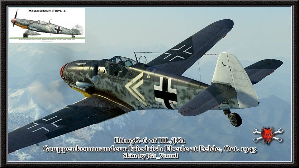 JG1_Vonrd Posted February 15, 2022 Posted February 15, 2022 (edited) Two skins of Bf109G-6 Late flown by Friedrich Eberle Gruppenkommander of III./JG1 at Eelde in Oct. 43. I used the colors as provided by @SimSonius and changed the wing pattern camo as per http://theprofilepaintshop.blogspot.com/2013/10/chosing-correct-wingpattern-for-bf109g-6.html. Again @SimSonius provided this information. I used Rap's Petrol spill psd on the fuel filler, added and modified weathering (I manipulated the Alpha to make the oil on the belly shiny wet looking). Each skin is rendered both with and without the swastika and they have been submitted to Haluters. Files are here if you don't want to use Haluters: https://www.dropbox.com/sh/dmgwk954c26zgic/AABjHIlMmdHQM8Ytz9kp9adya?dl=0 (edited) Edited February 15, 2022 by JG1_Vonrd 10 4 4